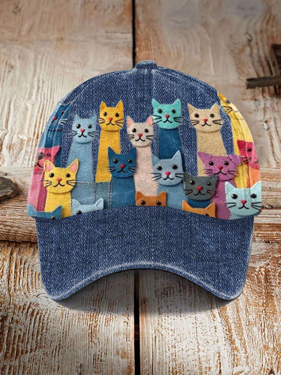 Unisex Colorful Cats Design Print Cap