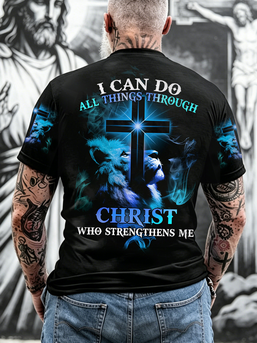 Men's I Can Do All Things Through Christ Print Casual Tee