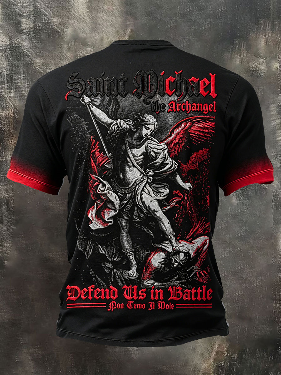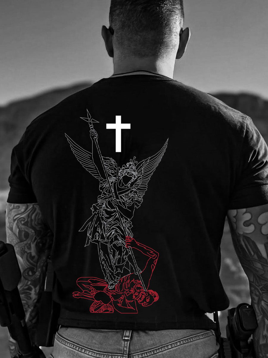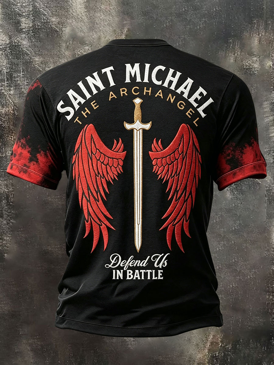 Men's Faith Saint Michae Art Veteran Printed T-shirt