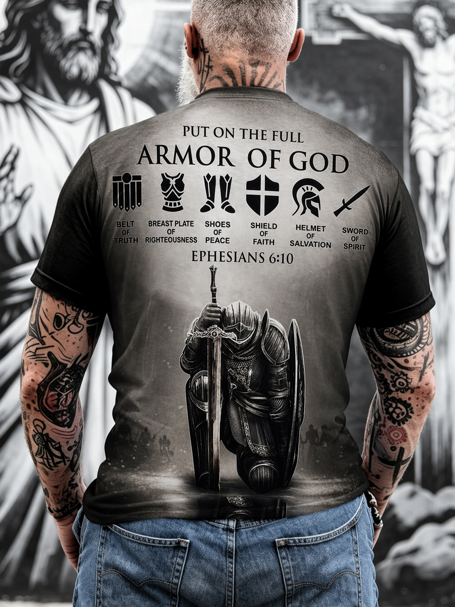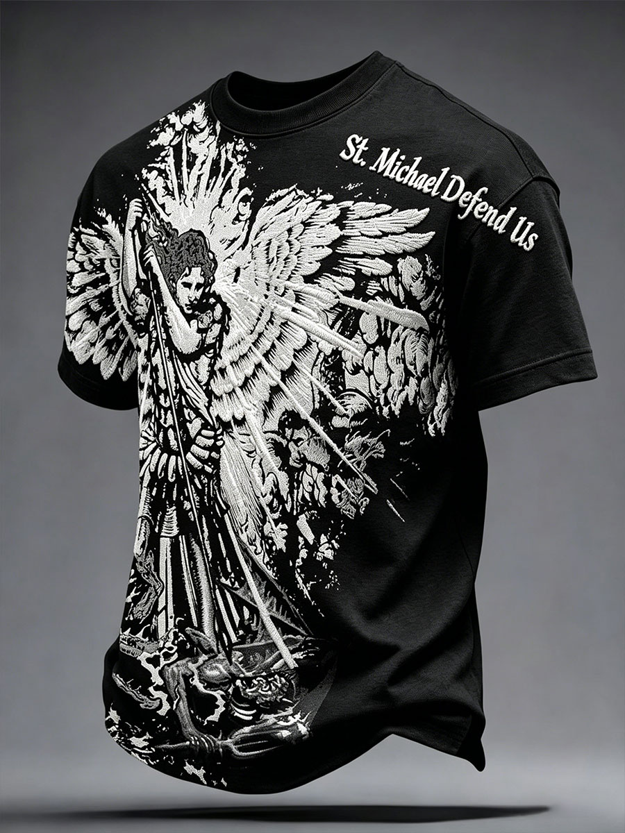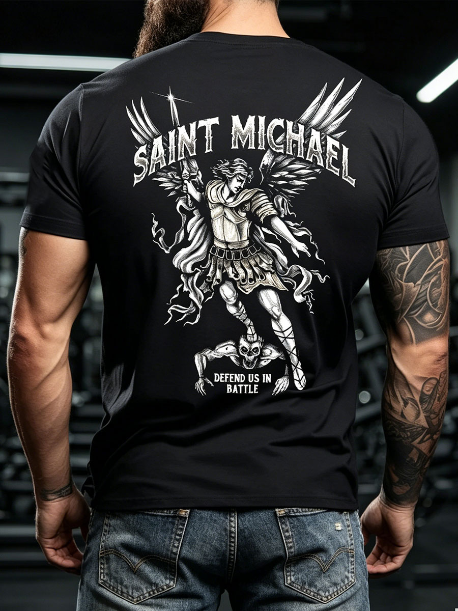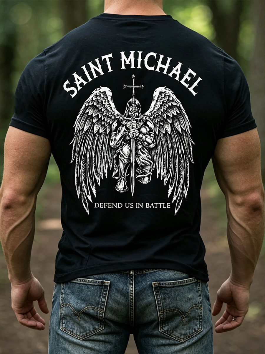 Men's Faith Saint Michae Art Veteran Printed T-shirt