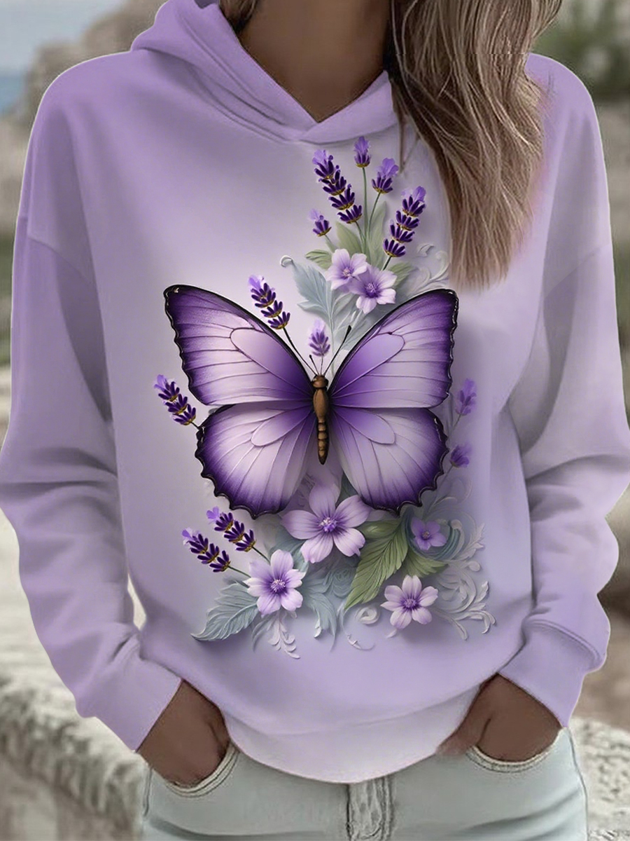 Women's Purple Butterfly Art Print Sweatshirt