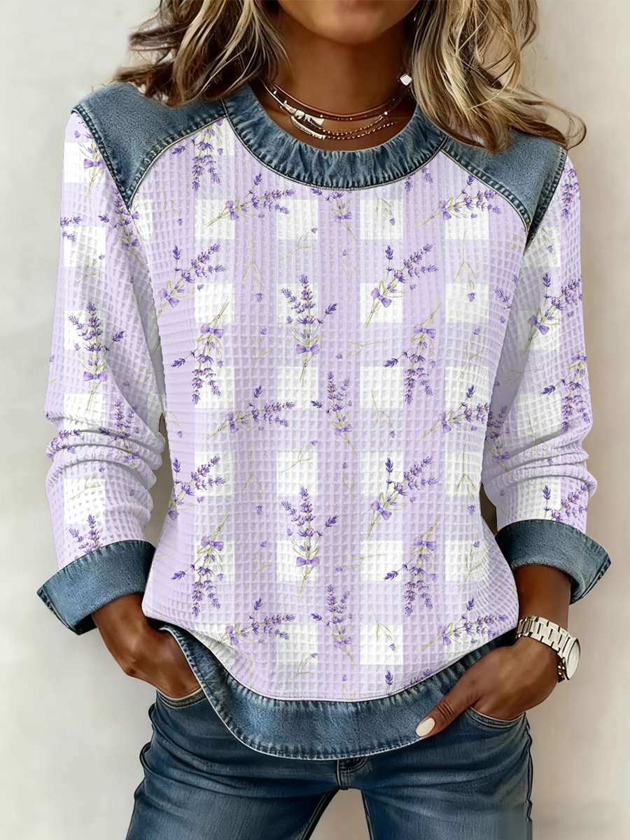 Women's Purple Art Print Waffle Sweatshirt