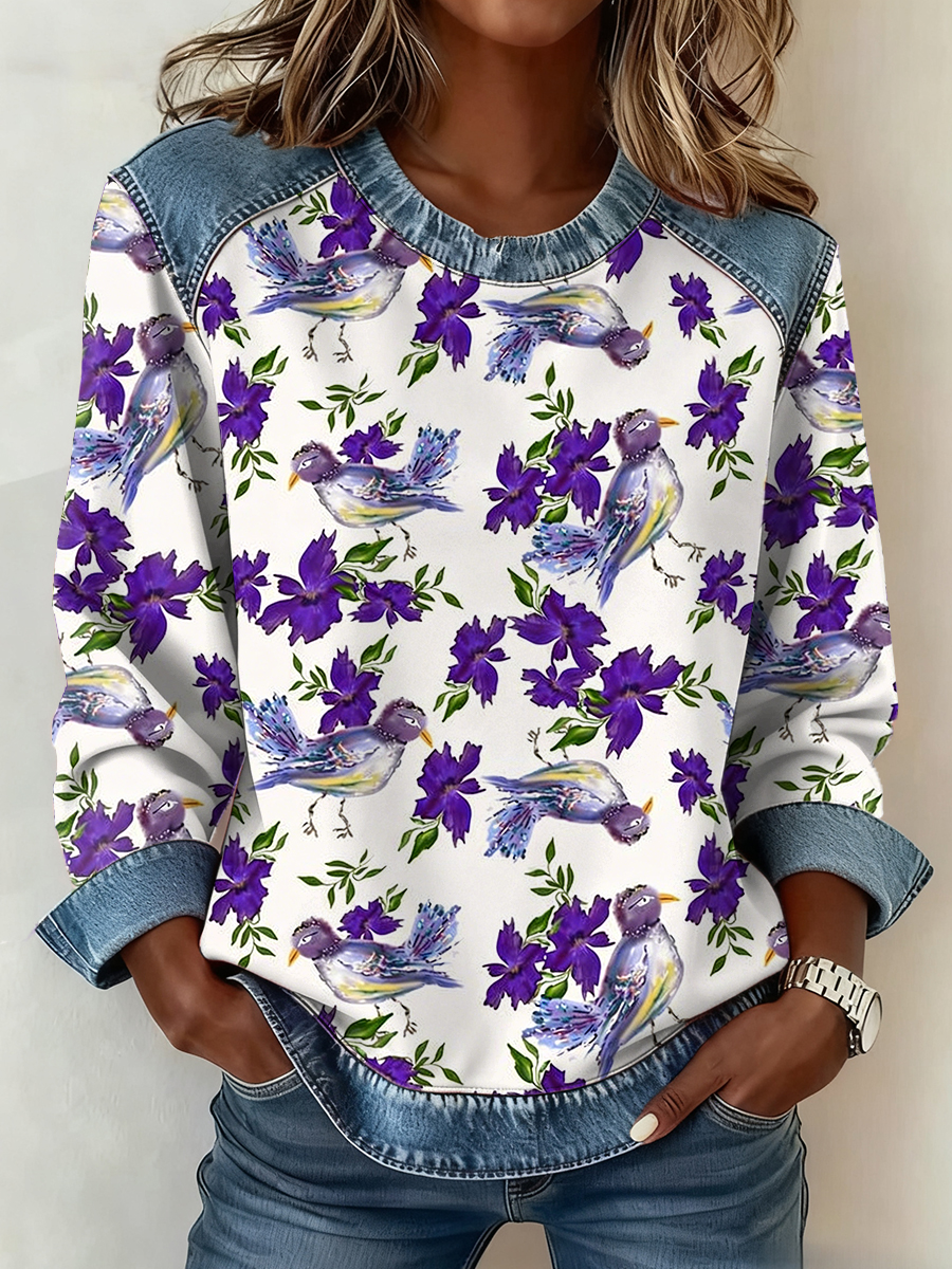 Women's Hummingbird Denim Patchwork Top