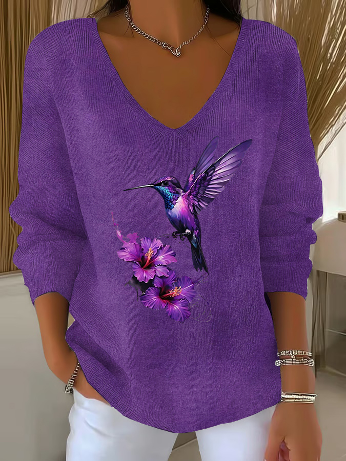 Women's Purple Art Print Casual Sweatshirt