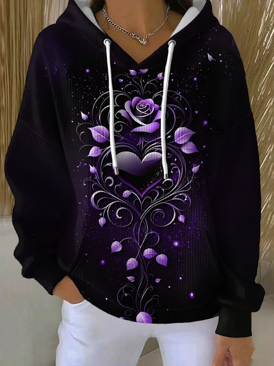 Women's Purple Art Print Casual Hoodie