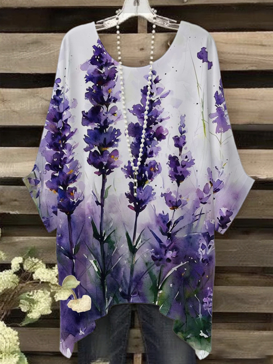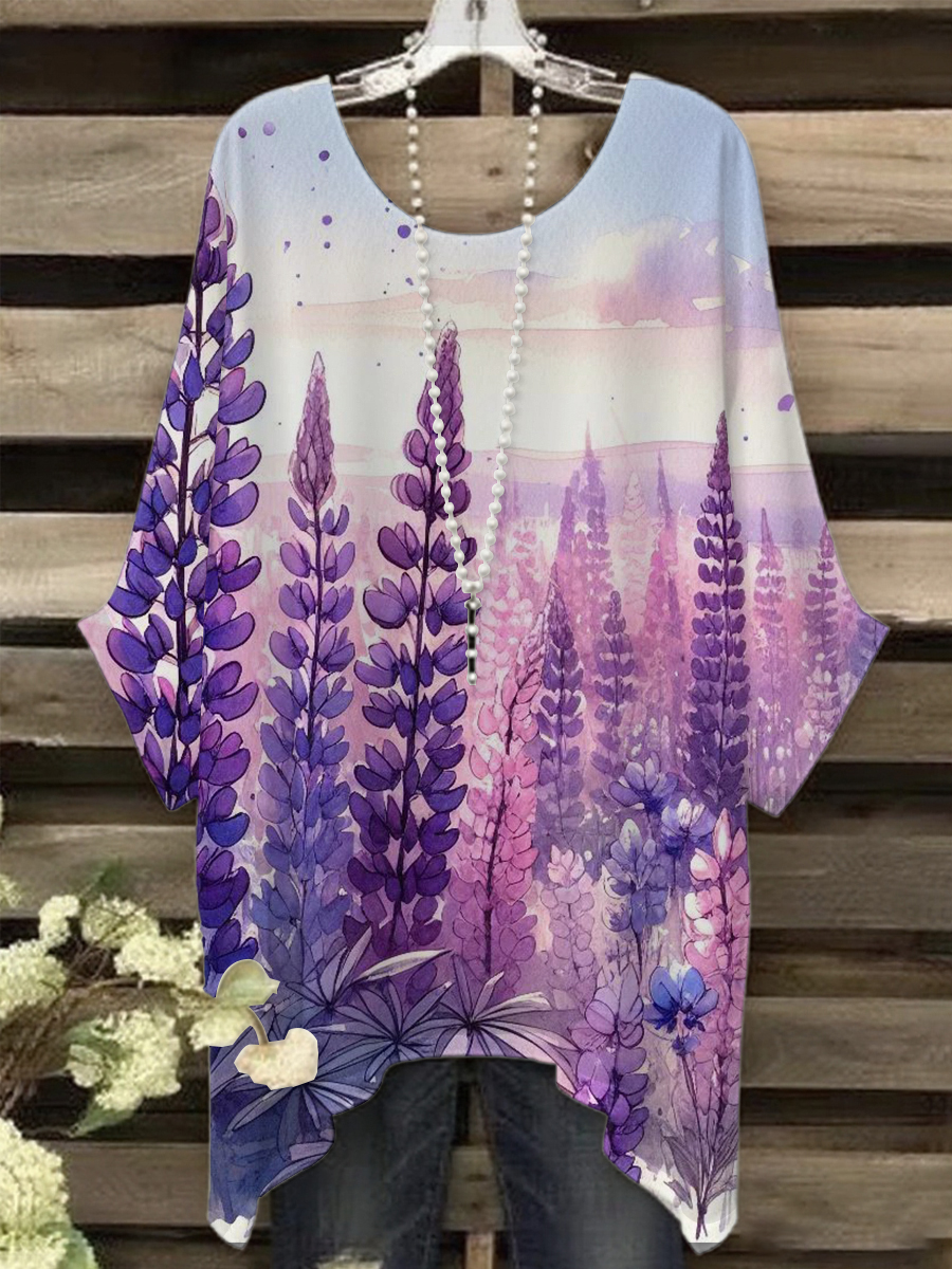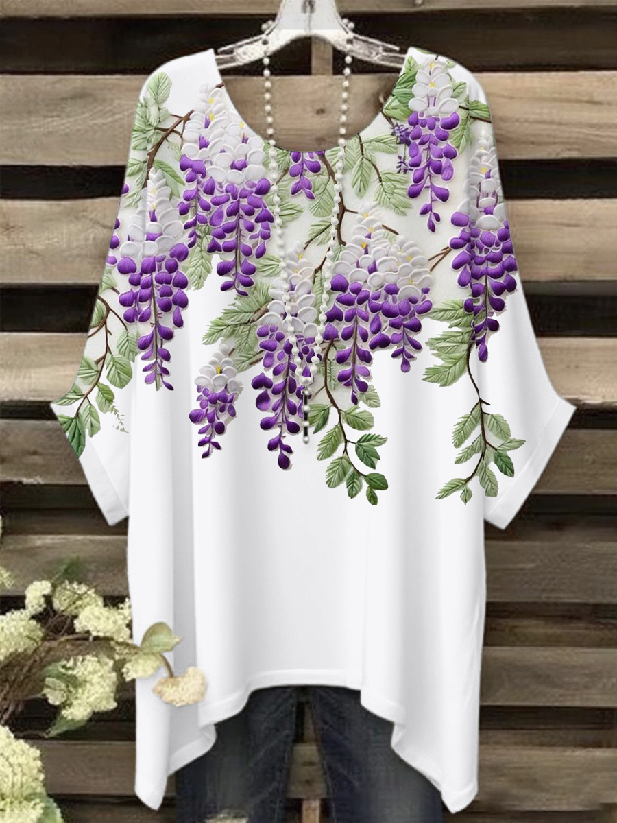 Women's Artz Purple Floral Vintage Graphic Print Casual Top