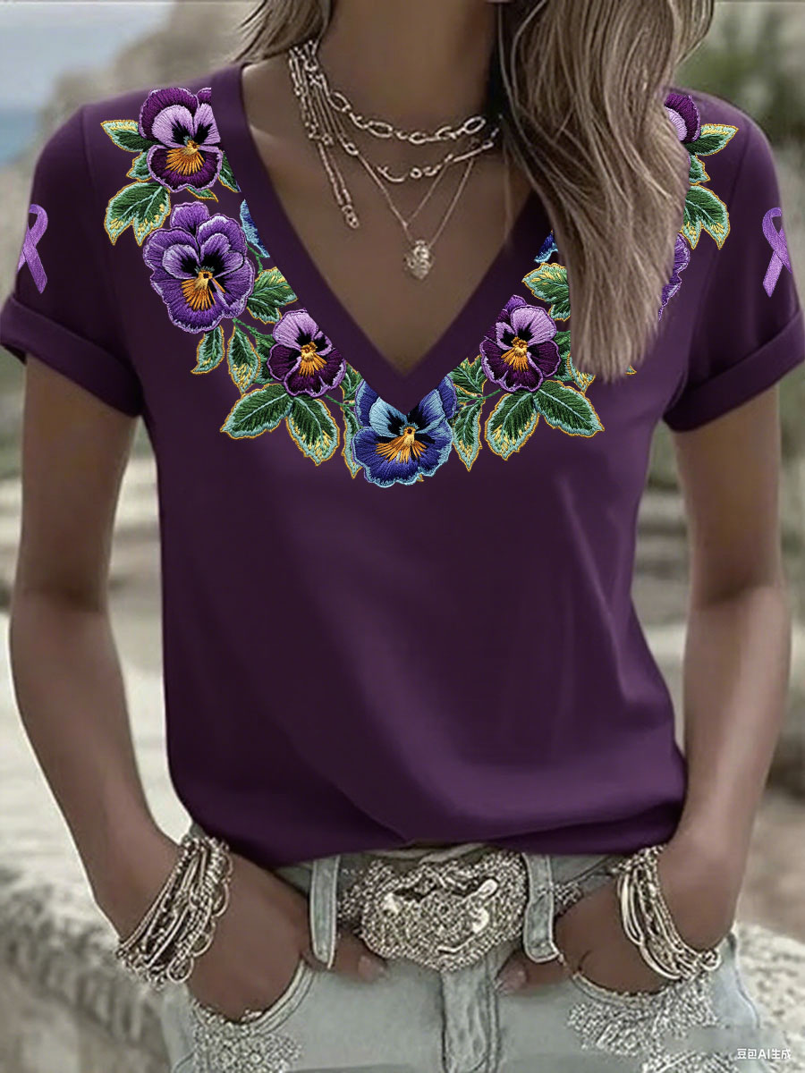 Women's Alzheimer's Floral V-Neck T-Shirts