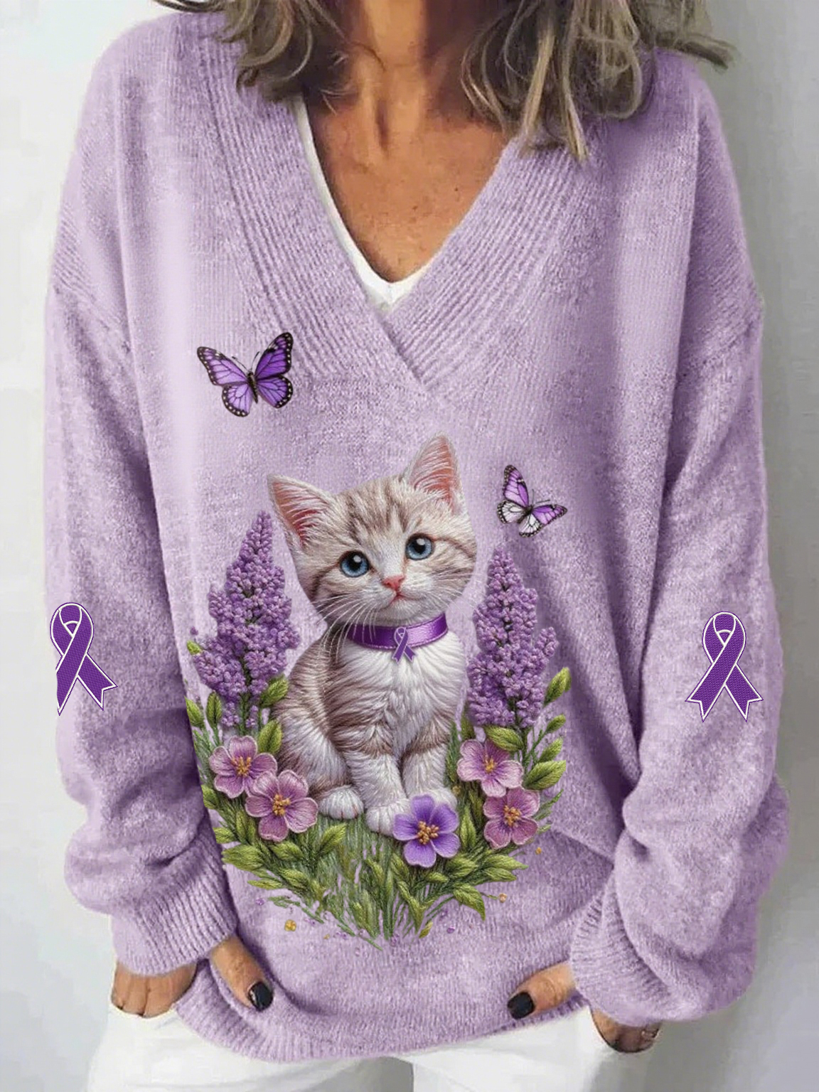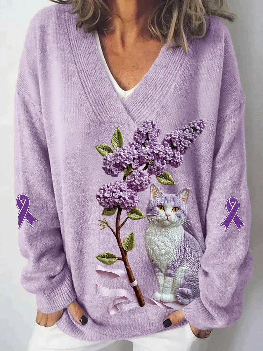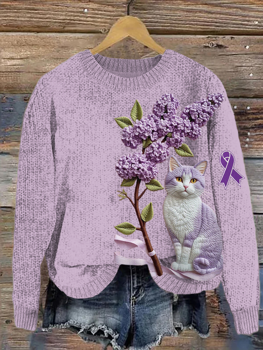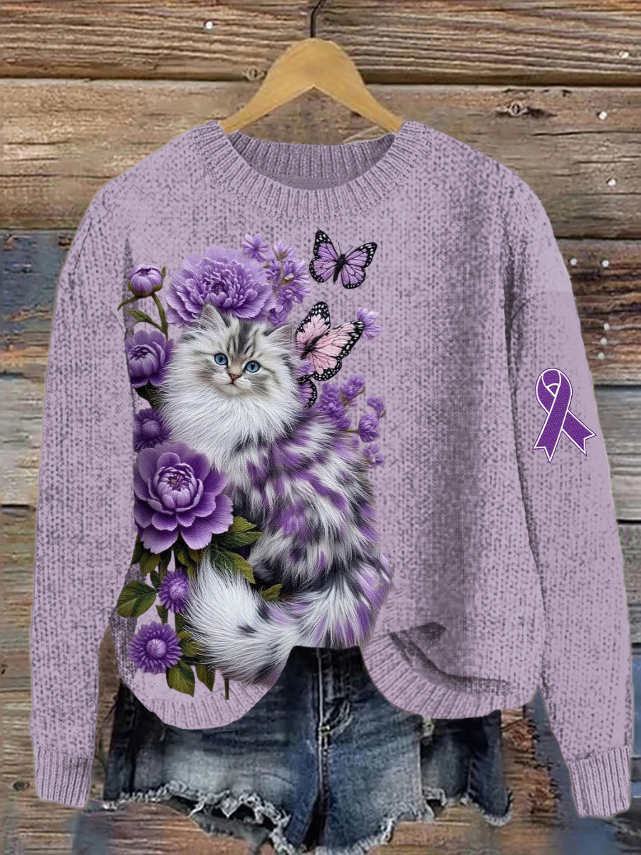 Women's Alzheimer's Awareness Purple Animals Print Sweater