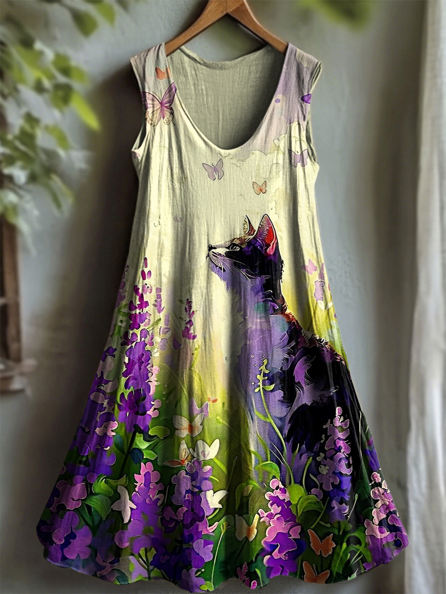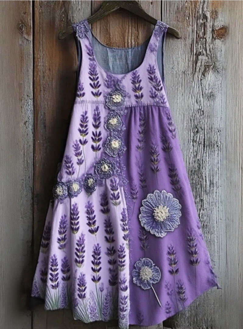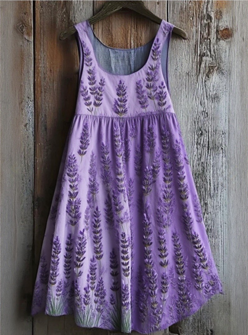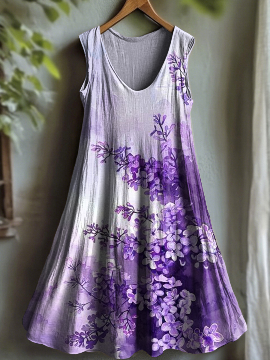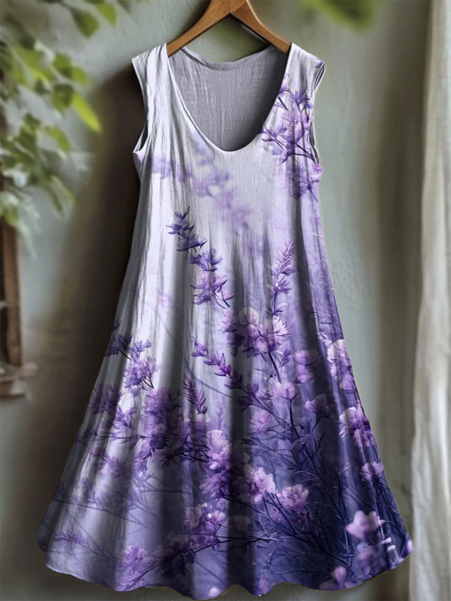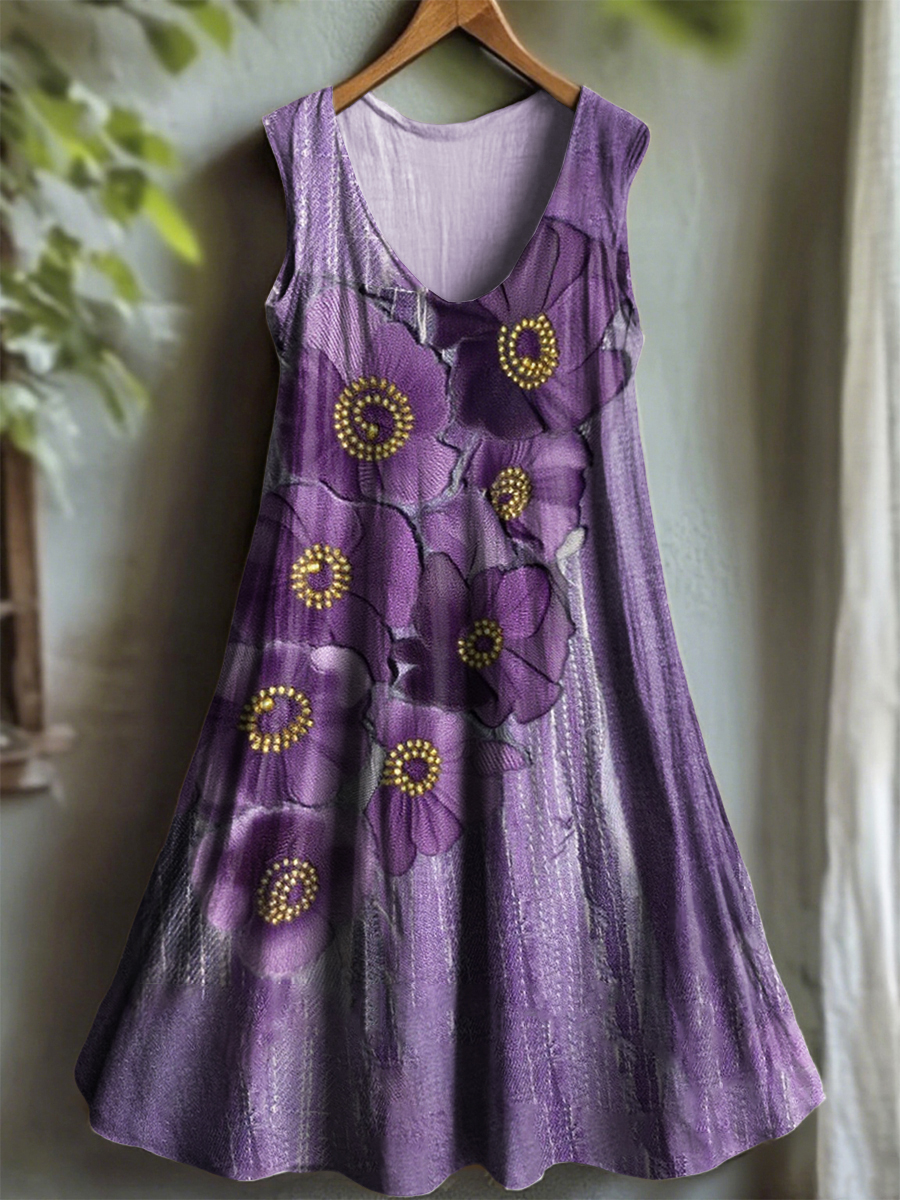 Women's Vintage Purple Lavender Alzheimer's Disease Art Casual Dress