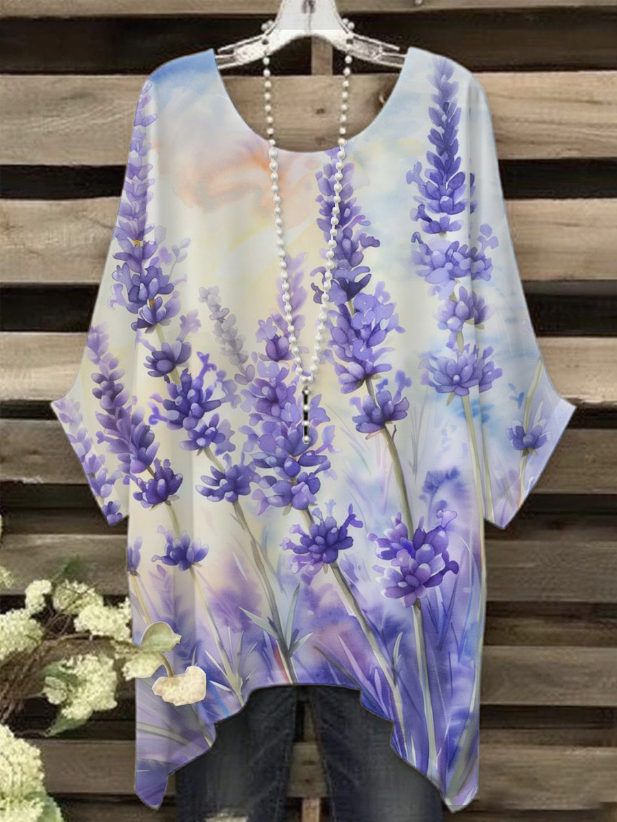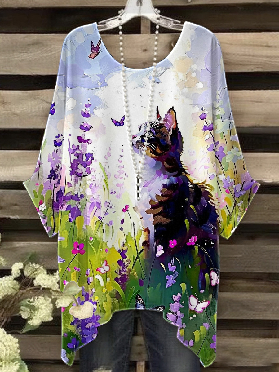 Women's Purple Butterfly Art Print Shirt