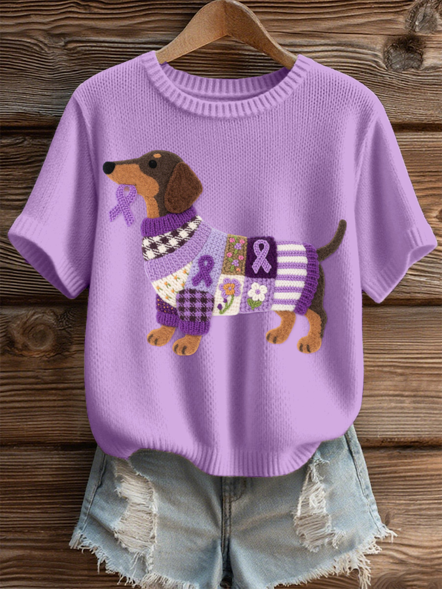 Women's Felt Art Dachshund Pattern Cozy Knit Top