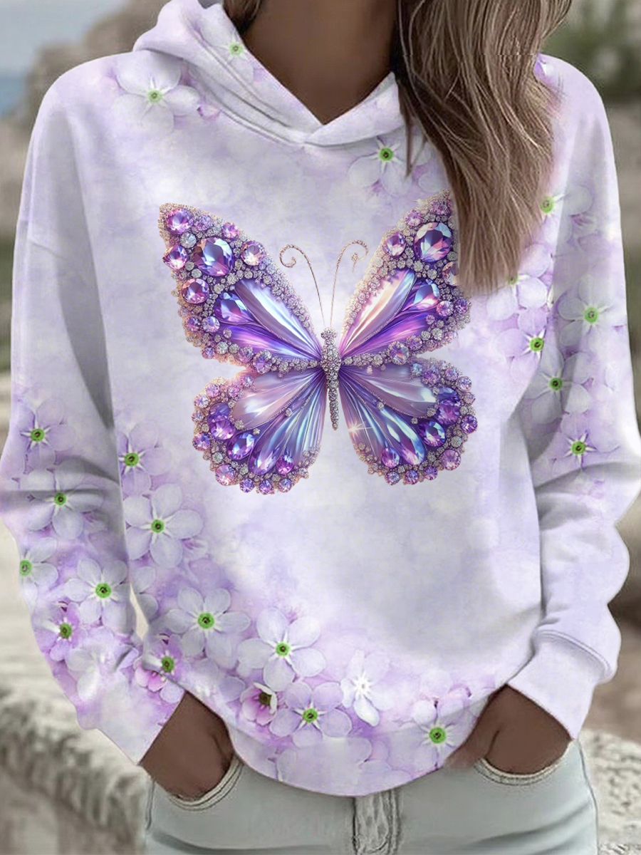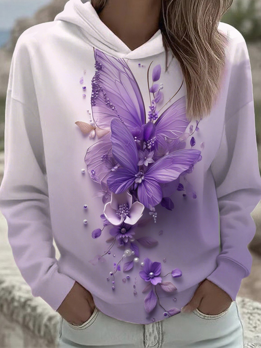 Women's Purple Butterfly Art Print Sweatshirt