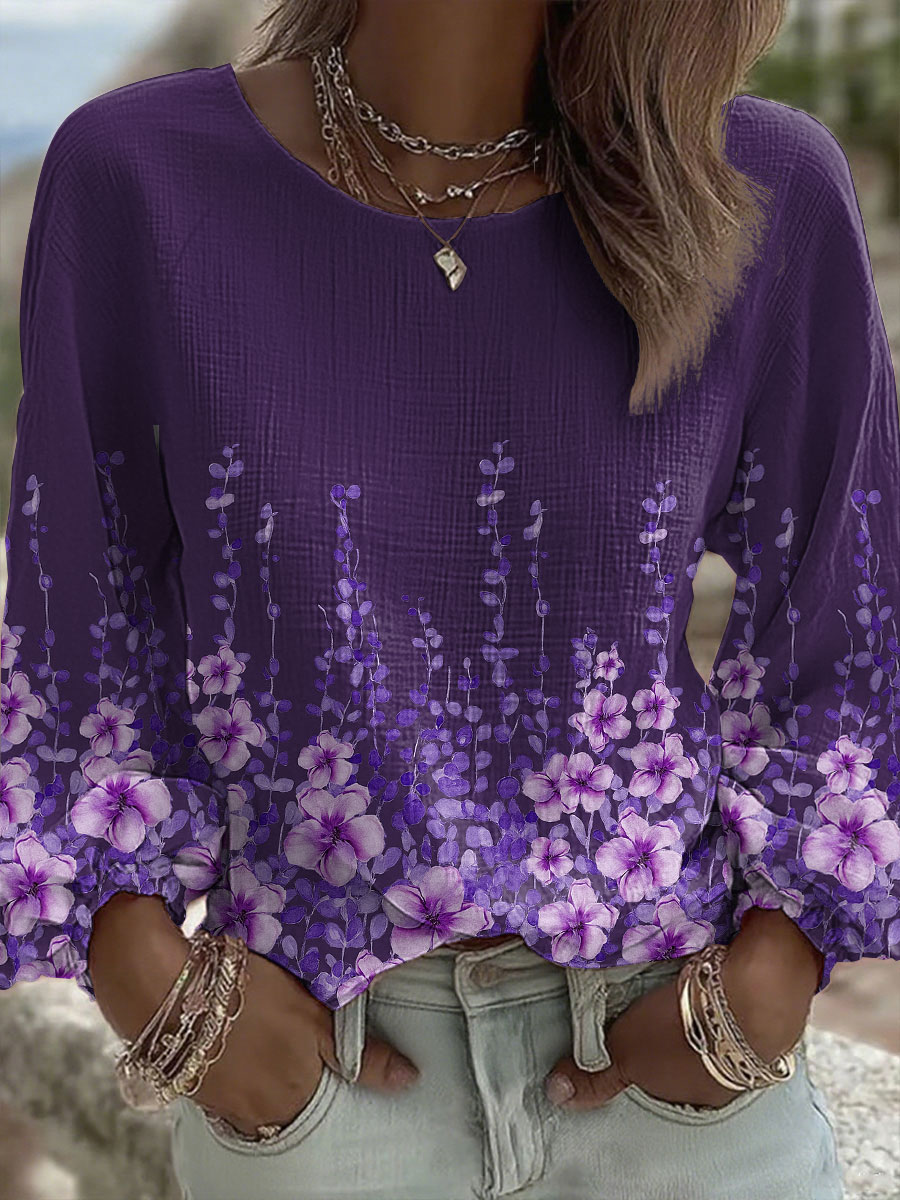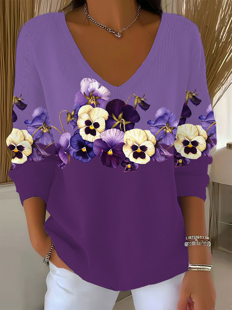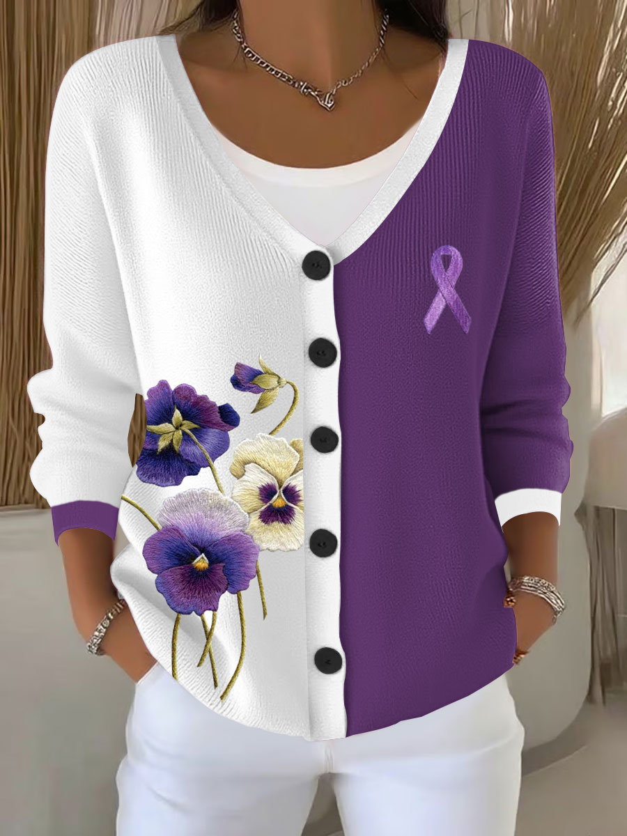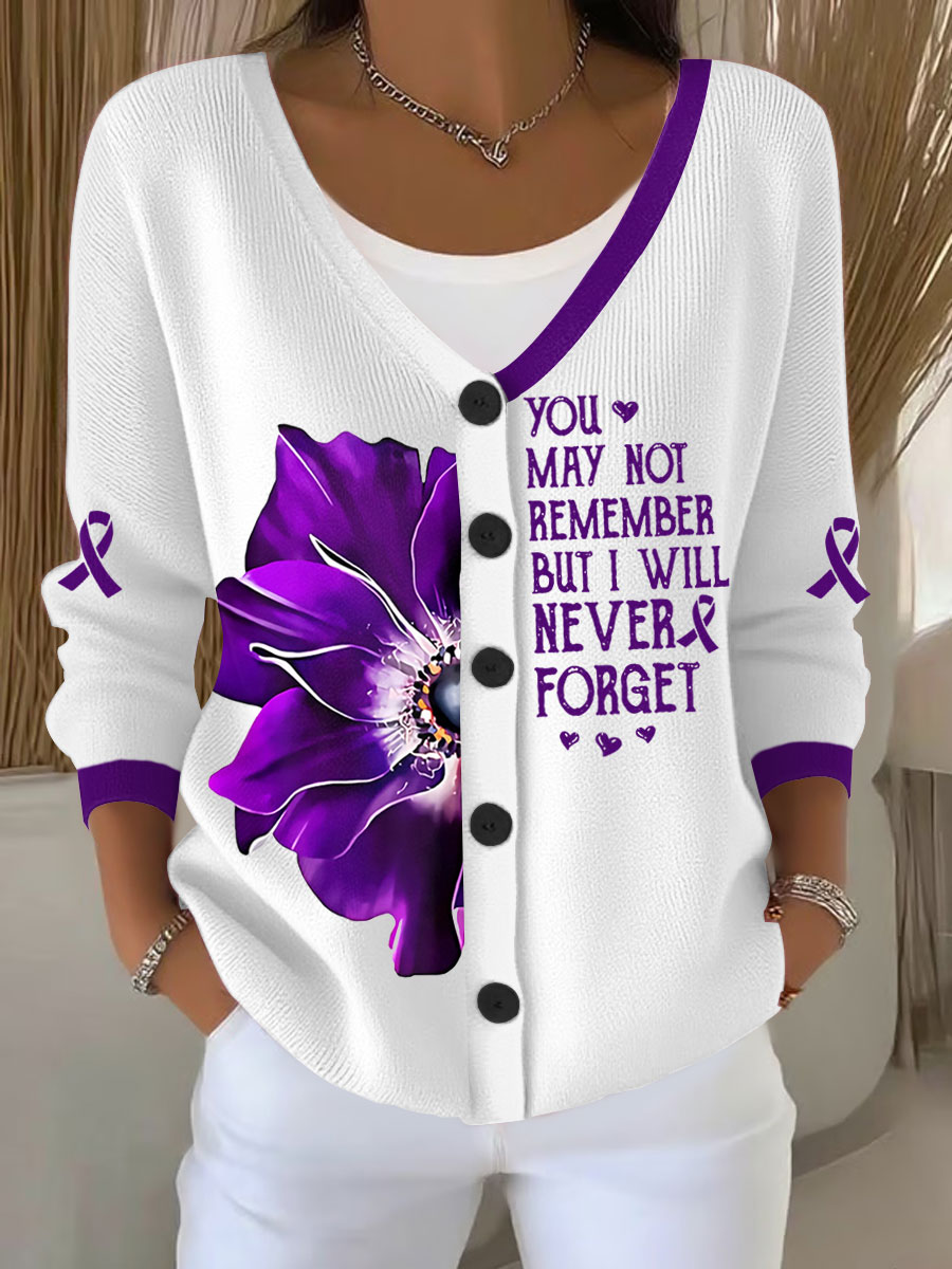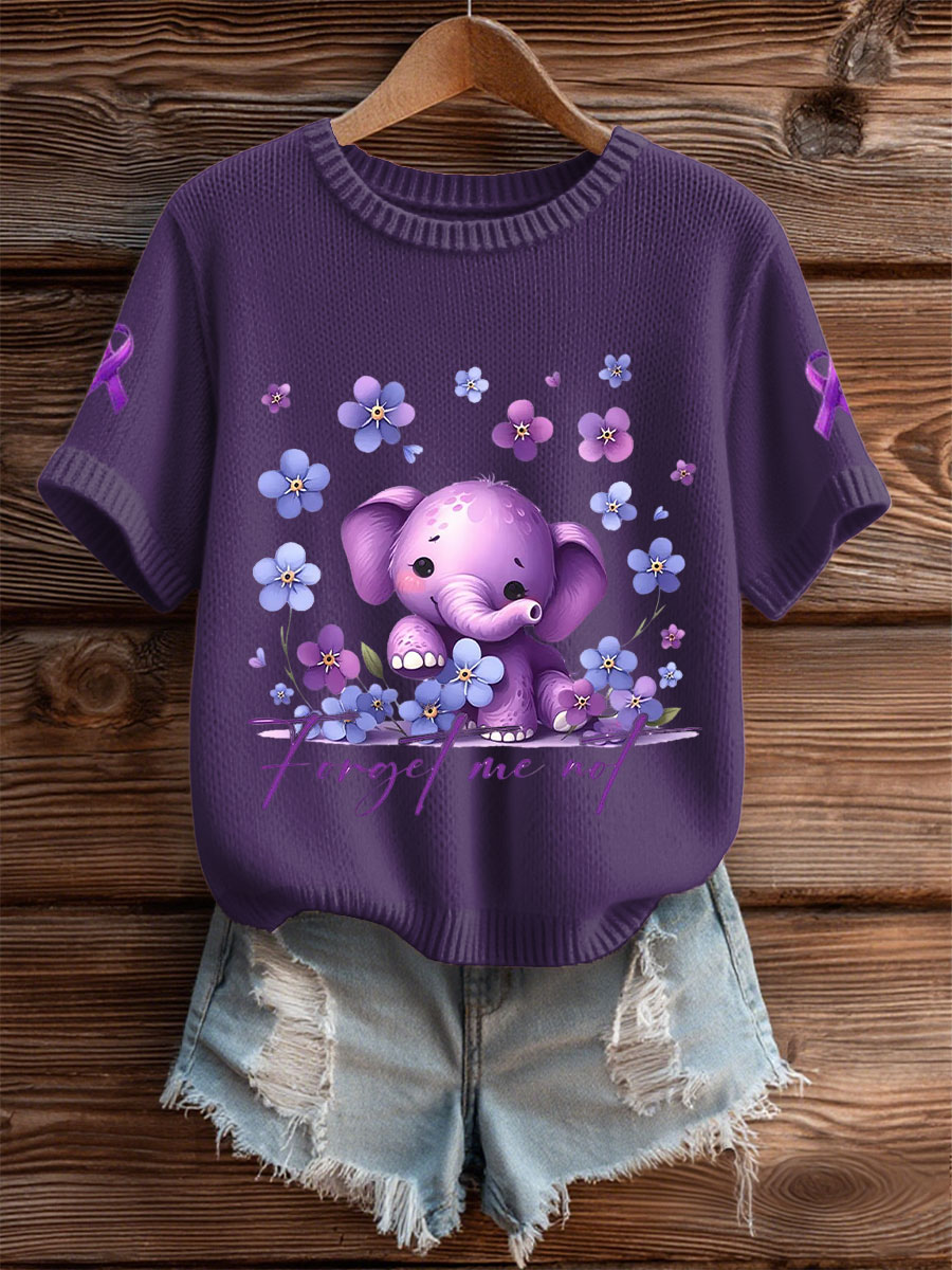 Women's Alzheimer's Awareness Purple Floral Print Casual T-Shirt