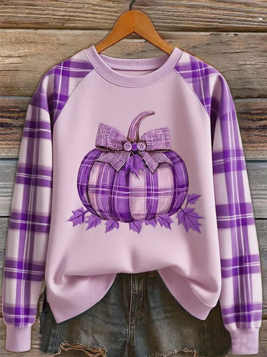Women's Purple Pumpkin Print Casual Sweatshirt