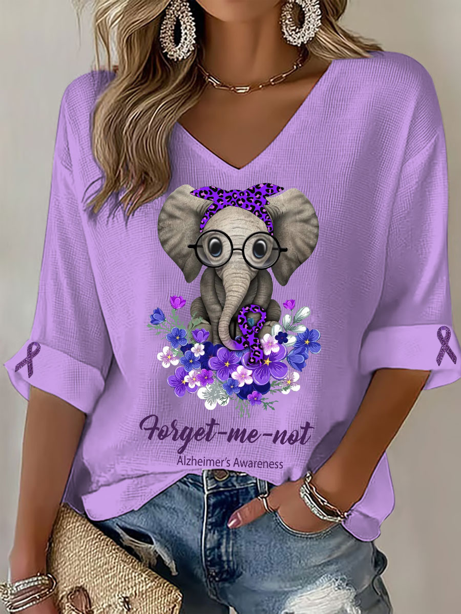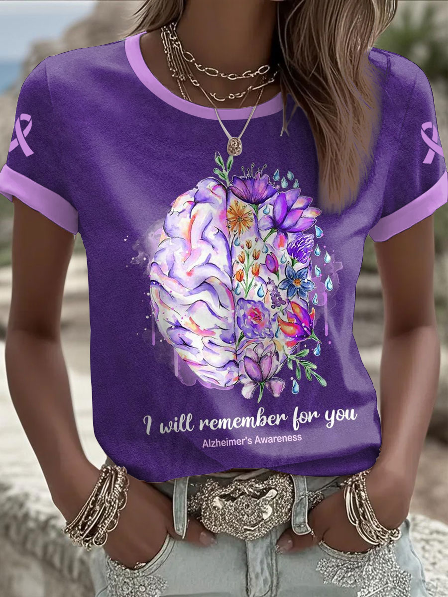 Women's Alzheimer's Awareness Heart Print Casual T-shirt