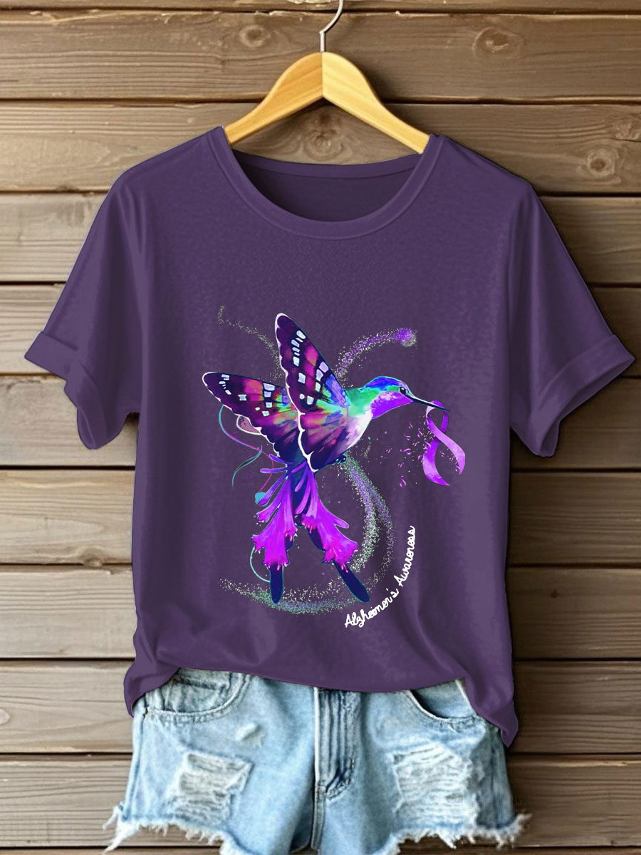 Women's Alzheimer's Awareness Purple Hummingbird T-Shirt