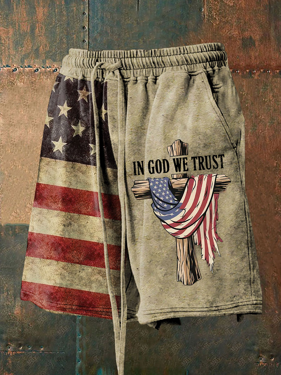Men's In God We Trust Flag Printed Shorts