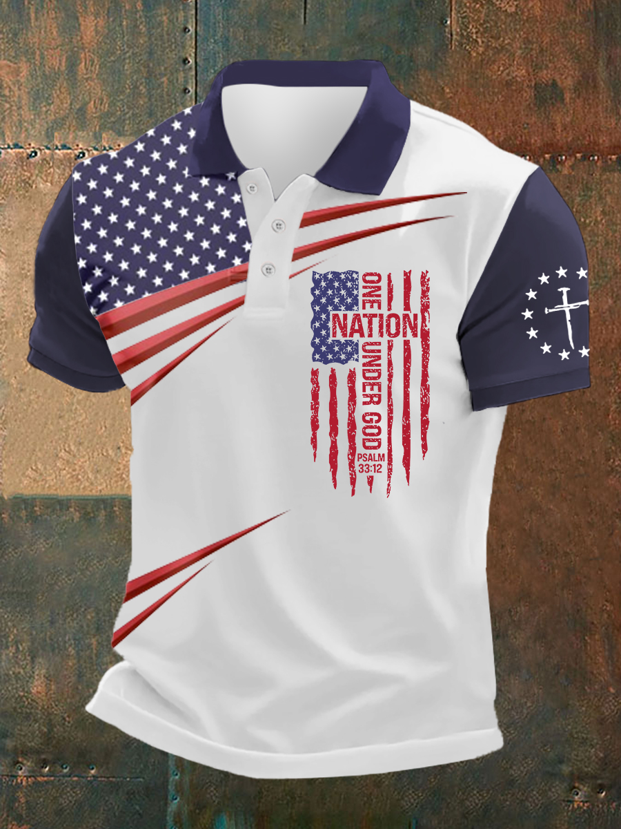 Men's One Nation Under God Faith Cross Flag Printed Pants Shorts