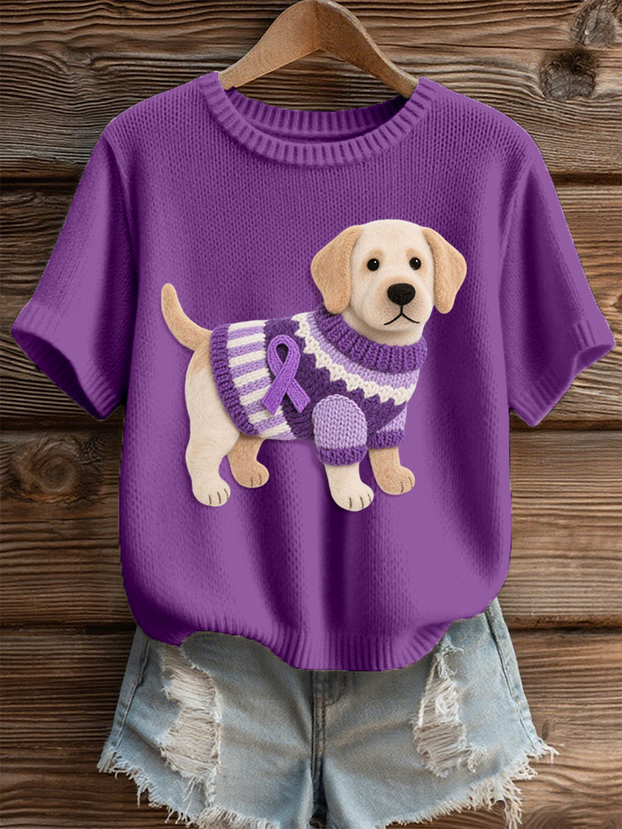 Women's Felt Art Labrador Dog Pattern Cozy Knit Top