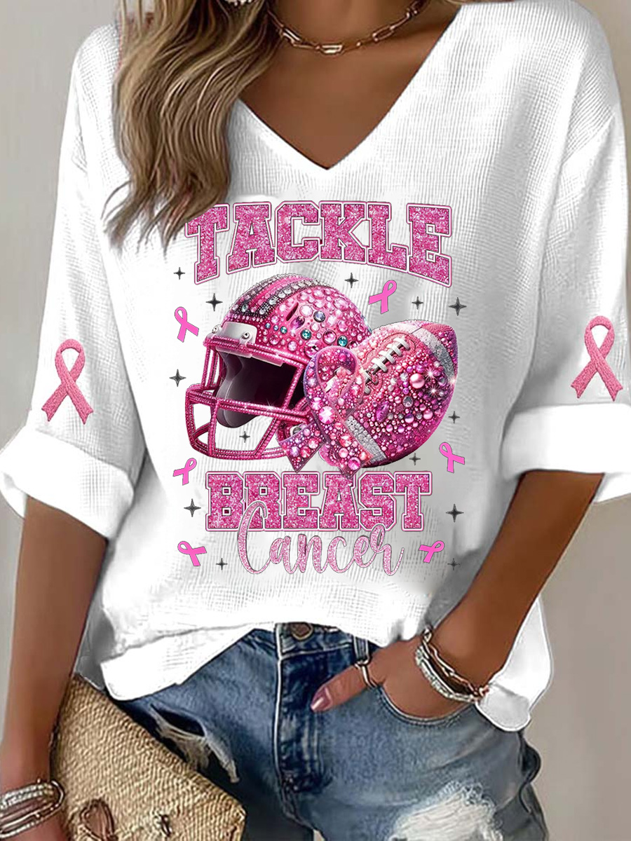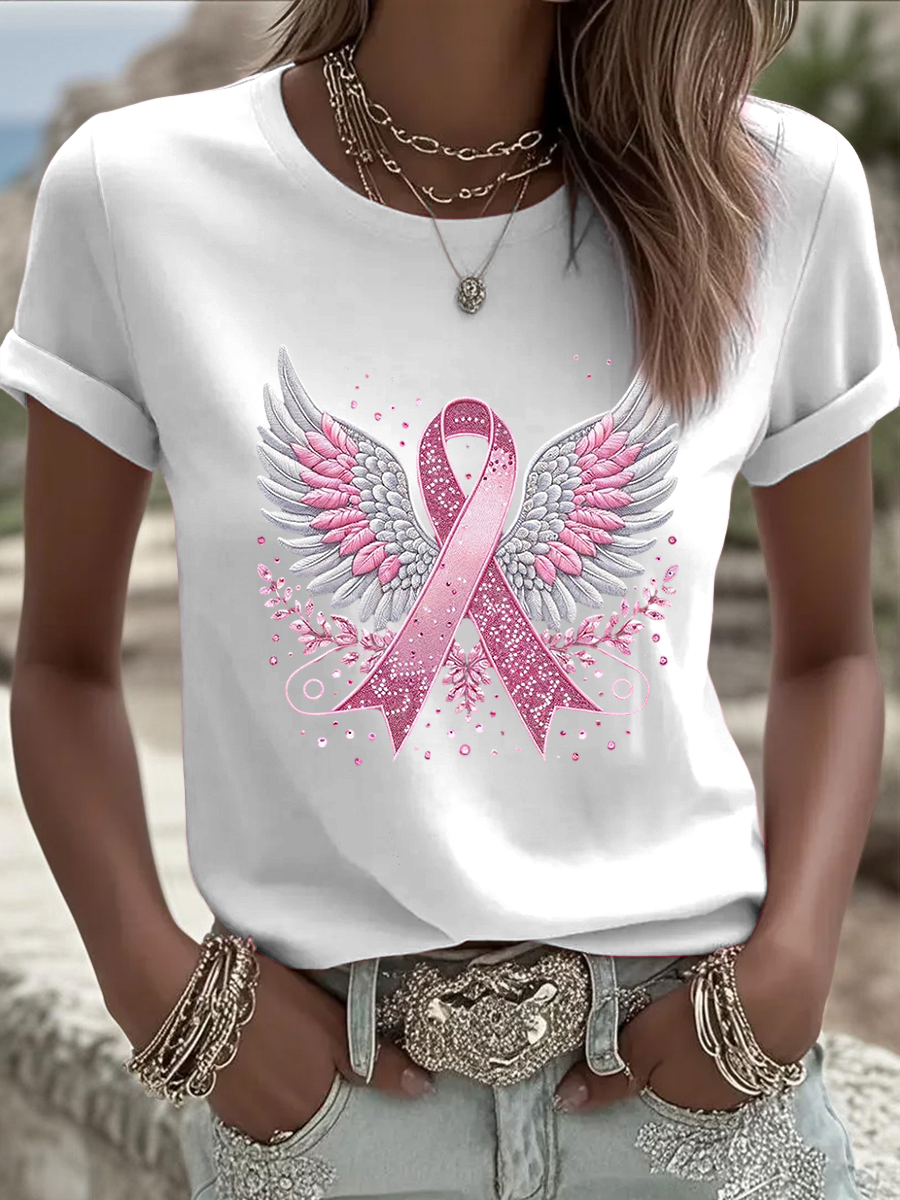 Women's Breast Cancer Ribbon Wings Sequin Print Casual T-Shirt