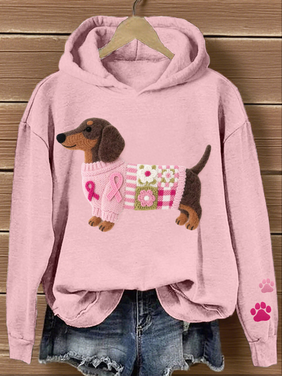 Women's Breast Cancer Printed Round Neck Long Sleeved Hoodie