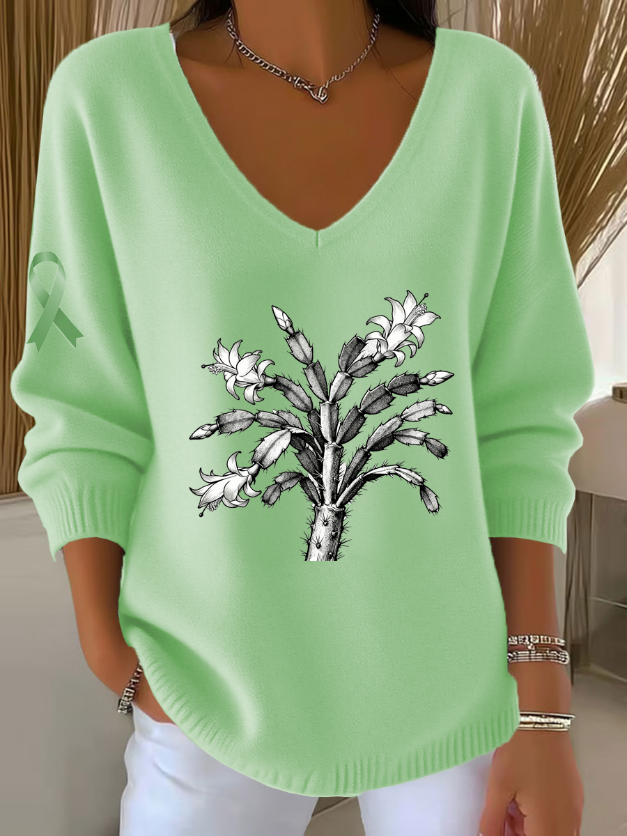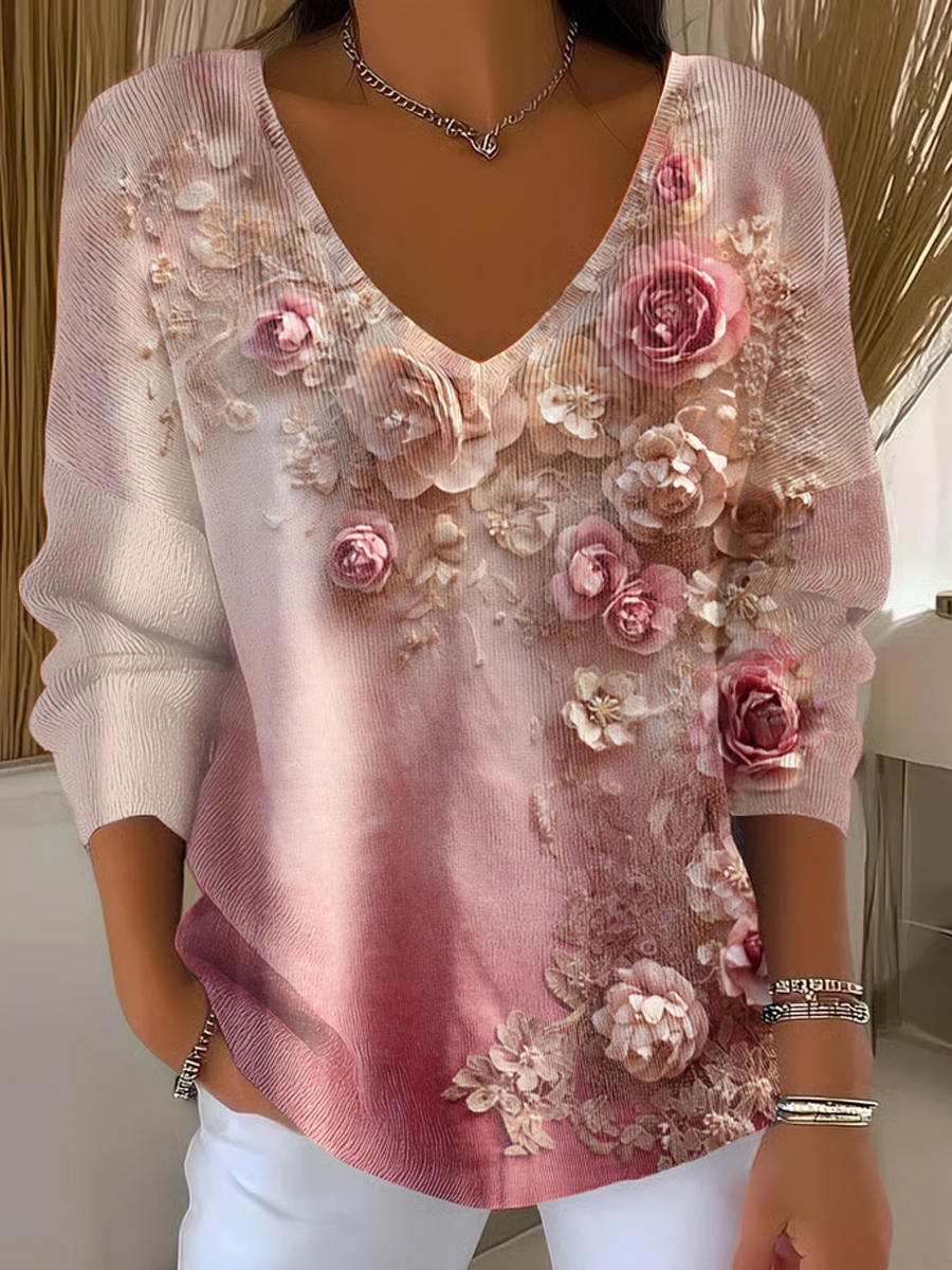 Women's Vintage Floral Art V-Neck Casual Top