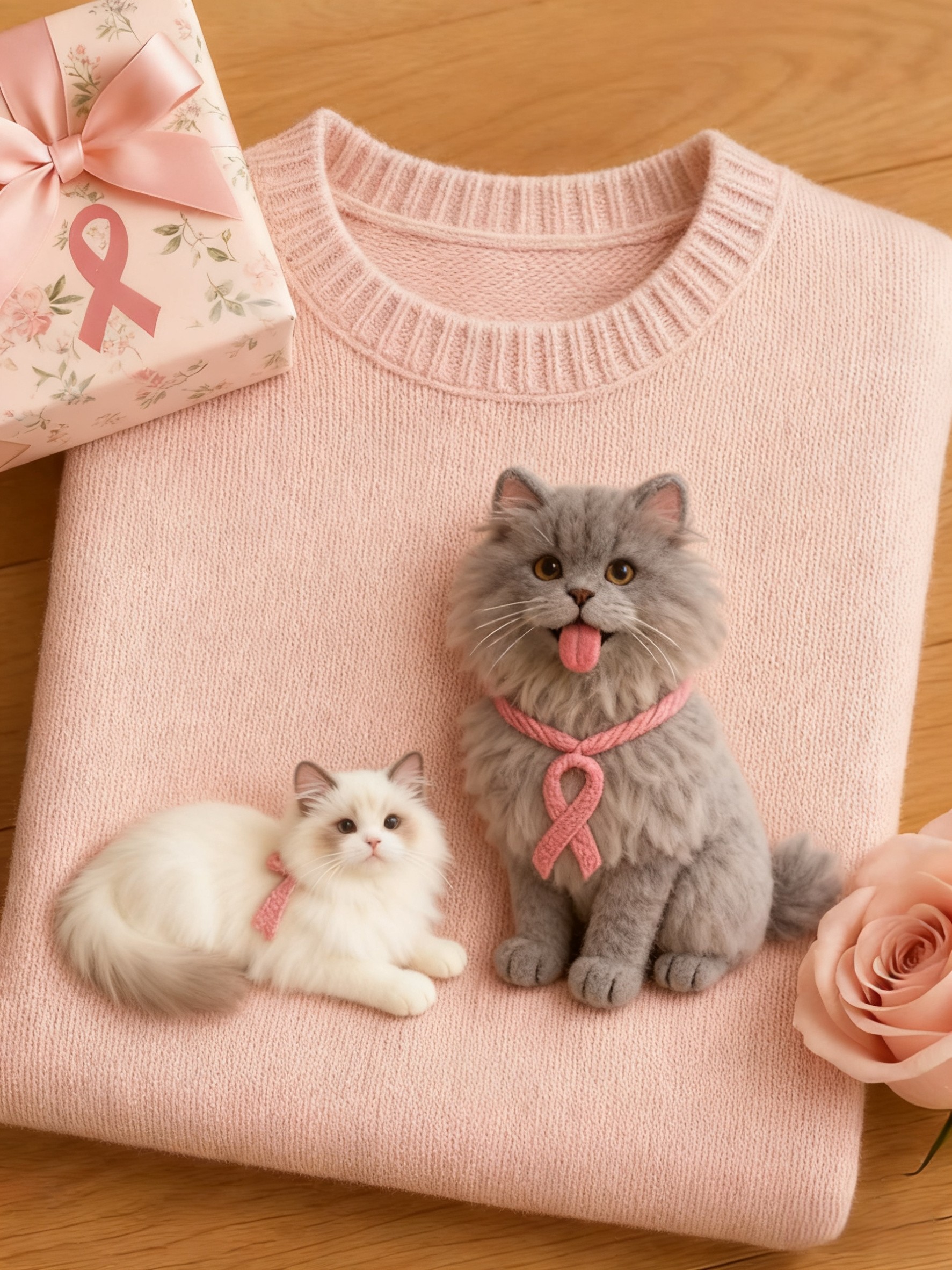 Women's Breast Cancer Awareness Felted Animal Hoodie