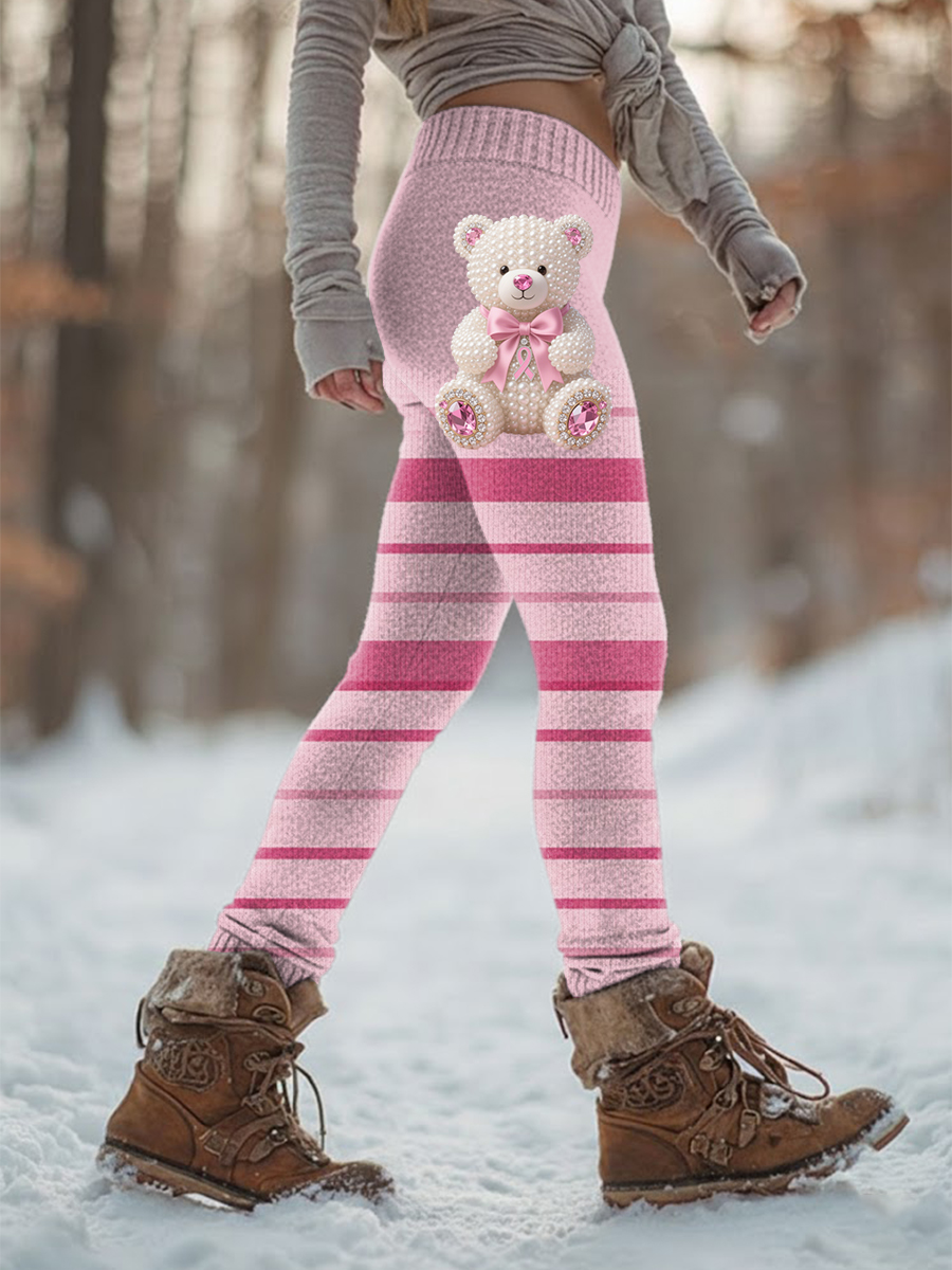 Women's Retro Breast Cancer Prevention Campaign Bear Print Sports Stretch Leggings