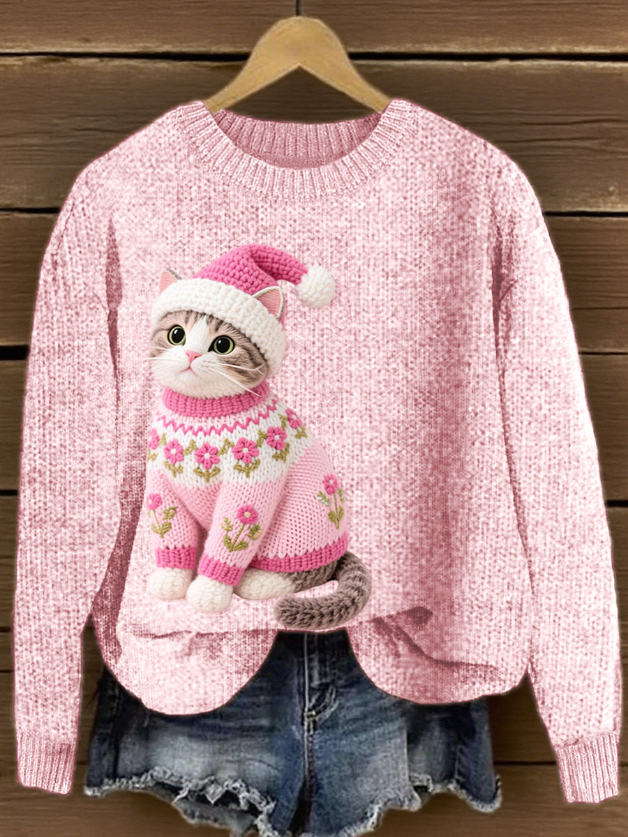 Women's Lovely Cat Crochet Pattern Cozy Knit Sweater
