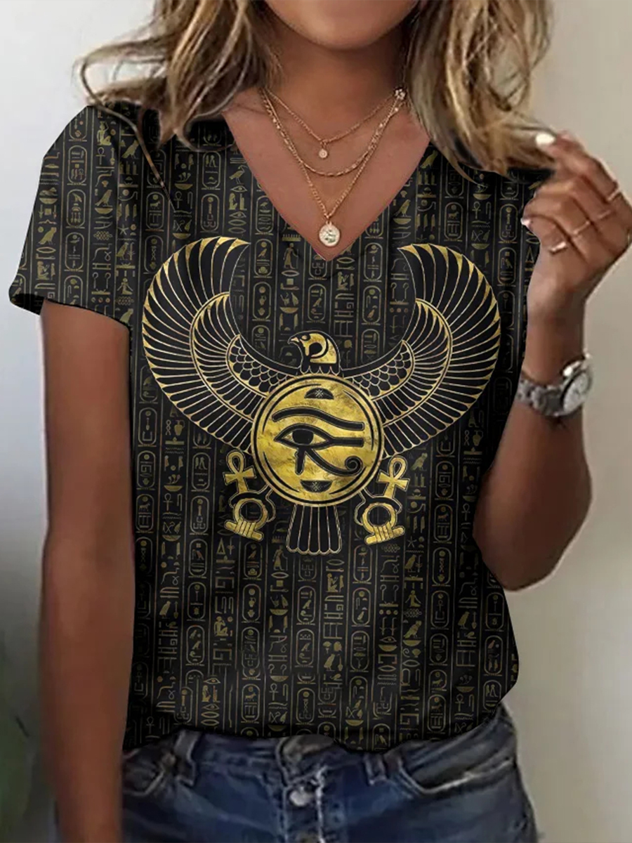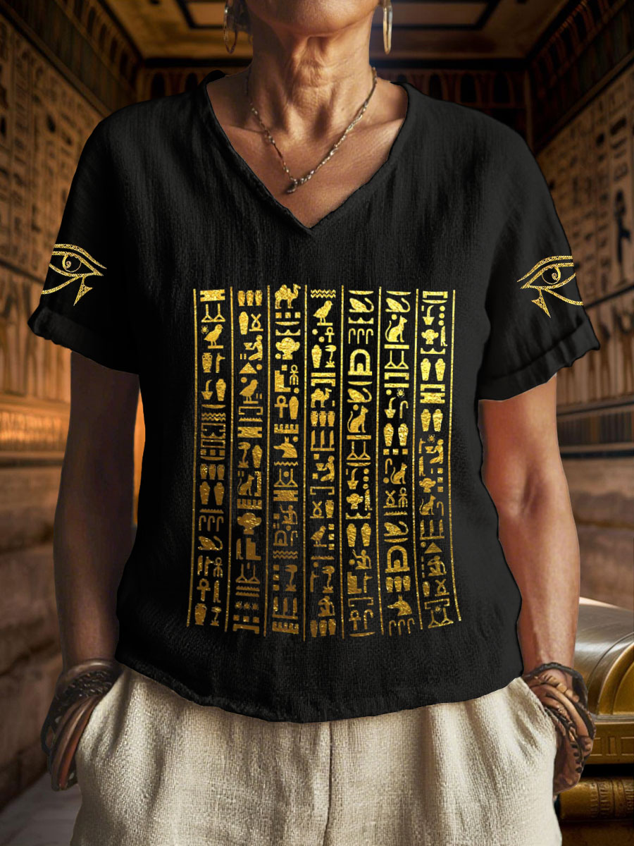 Women's Egyptian text symbol V-neck tops