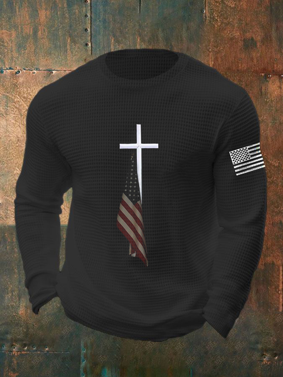 Men's Retro Flag Cross O-Neck Printed Long Sleeve T-Shirt