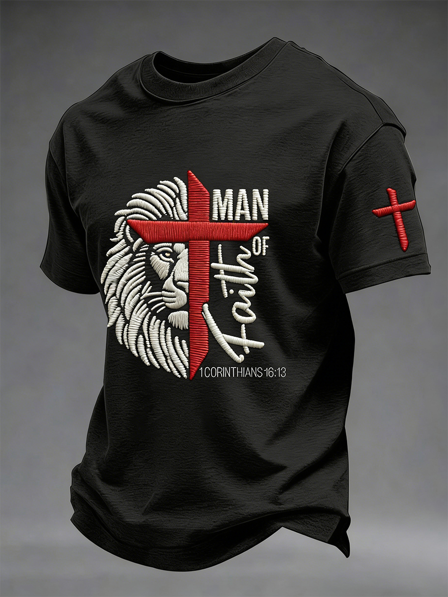 Men's Man Of Faith Christian Cross Short Sleeve T-shirt