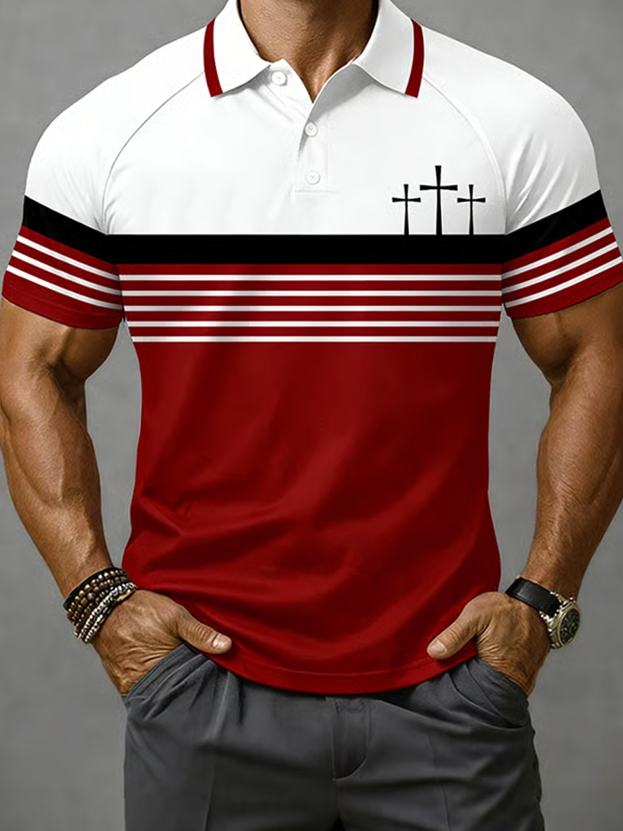 Men's Christian Cross Print Casual Polo