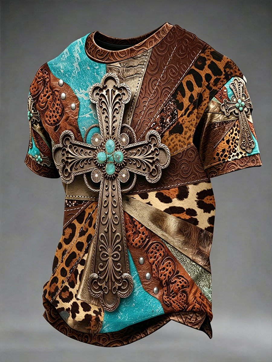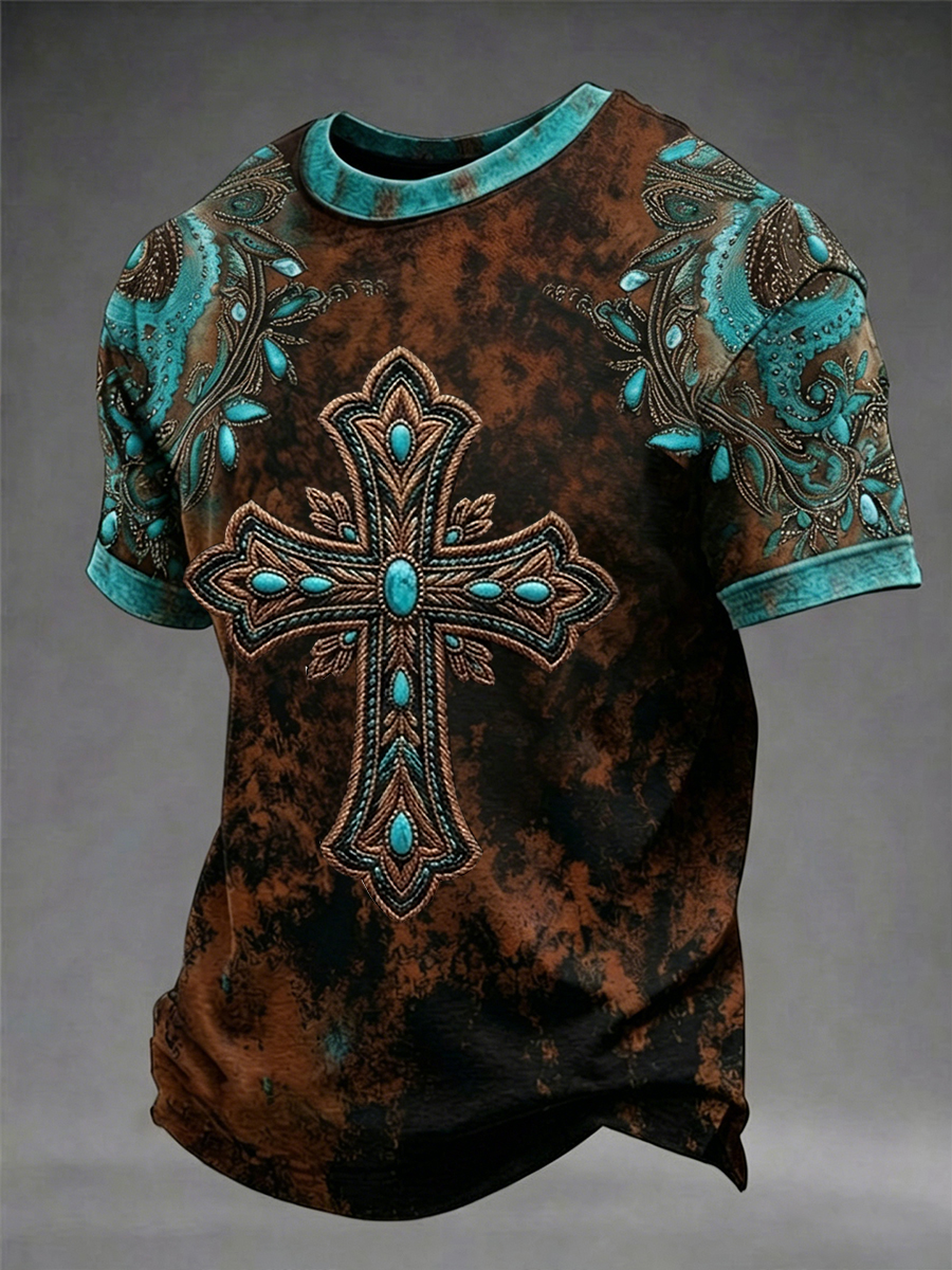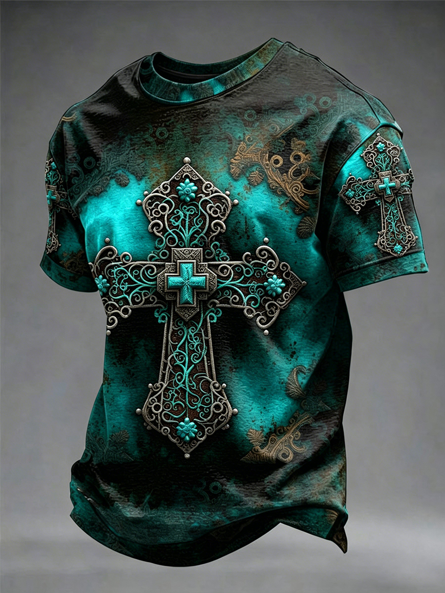 Men's Cross Faith Geometric Print Casual Top