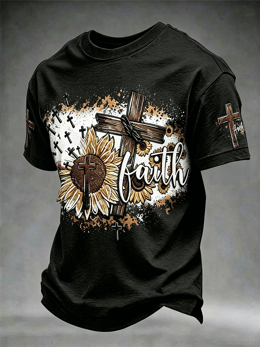 Men's Yeshua Faith Cross Printed Short Sleeve T-shirt