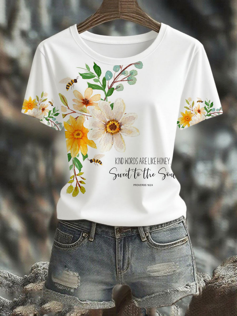 Women's 'Kind Words Are Like Honey' Printed Casual T-Shirt