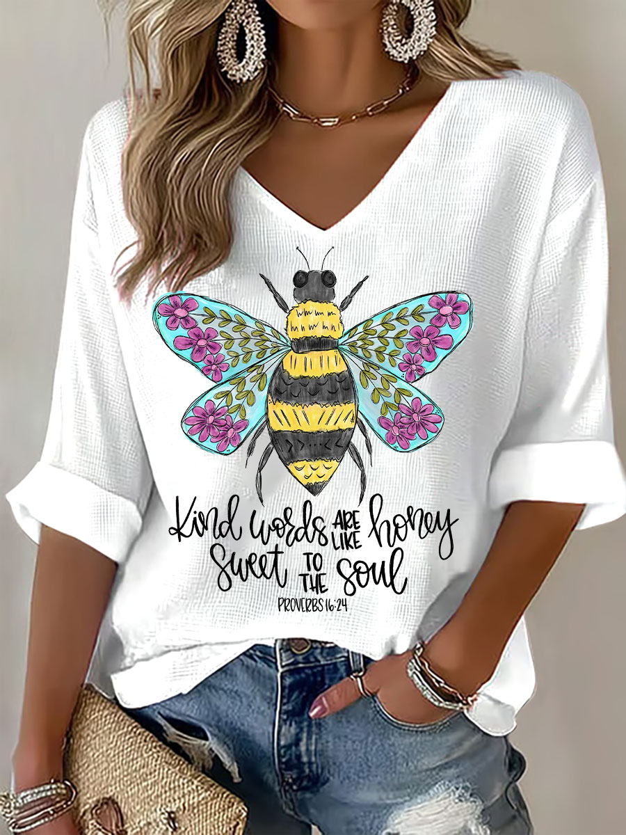 Women's Kind Words Are Like Honey Waffle Print Casual T-Shirt