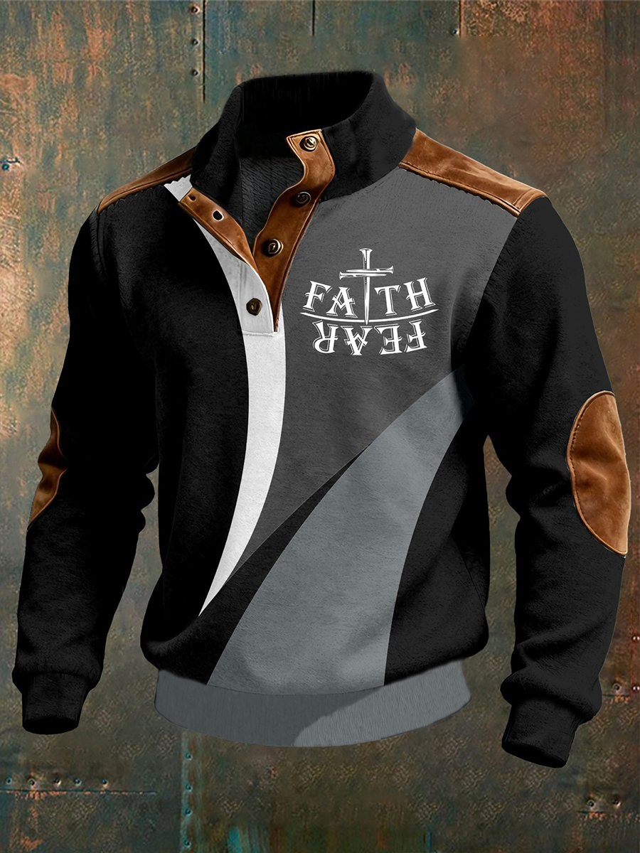 Men's Vintage Faith Over Fear Print Four-button Hoodie