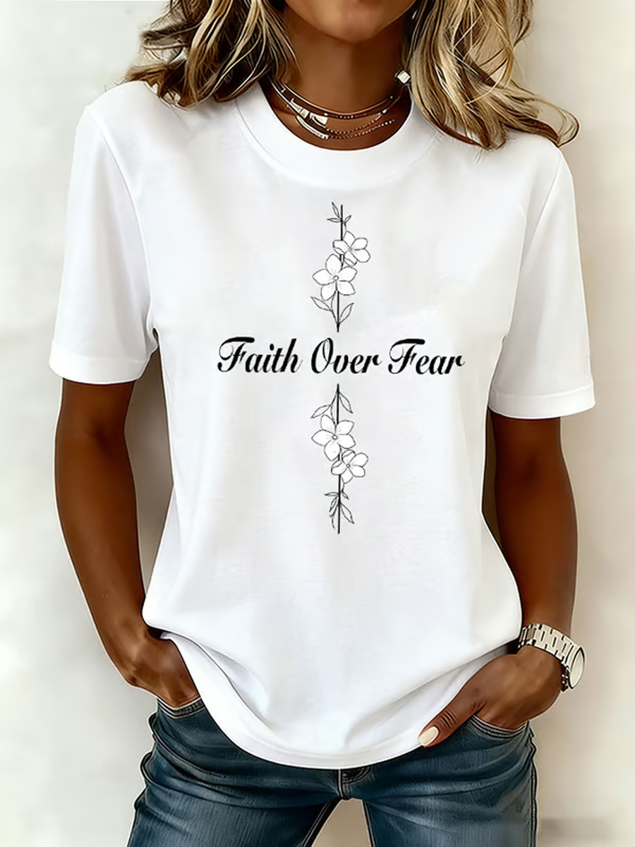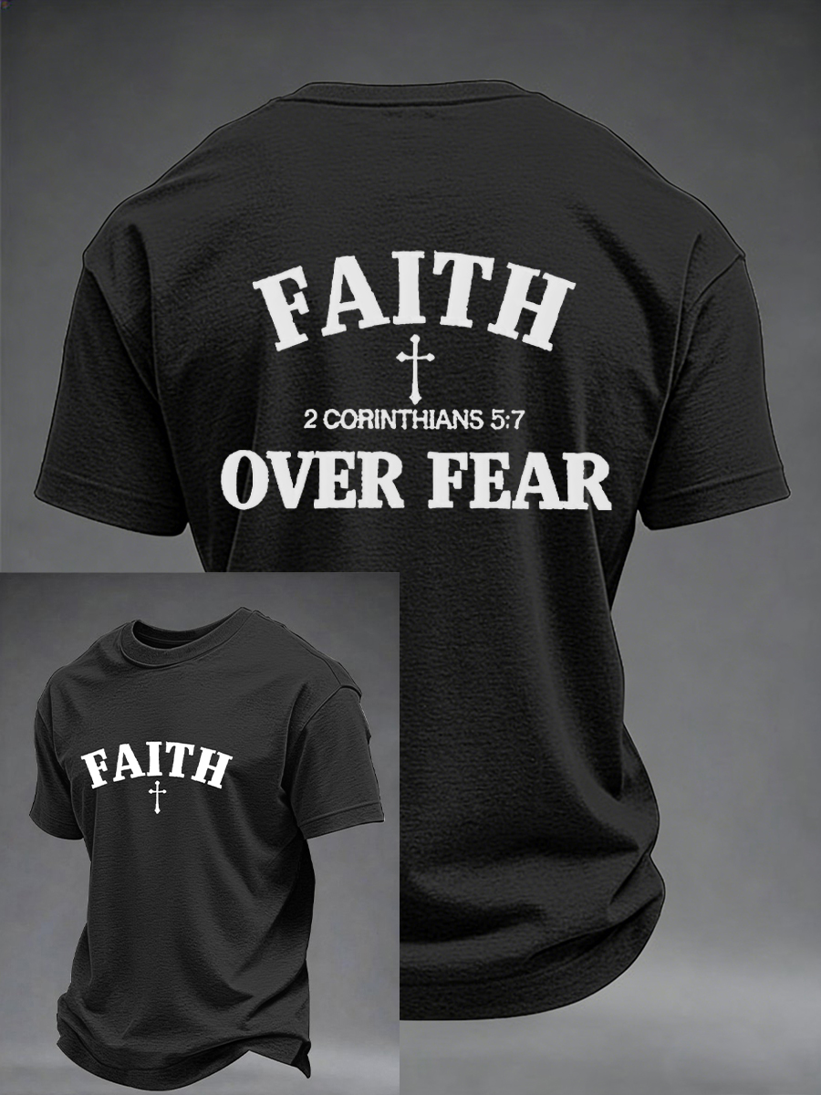 Men's Faith Over Fear Print Casual Short Sleeve T-Shirt