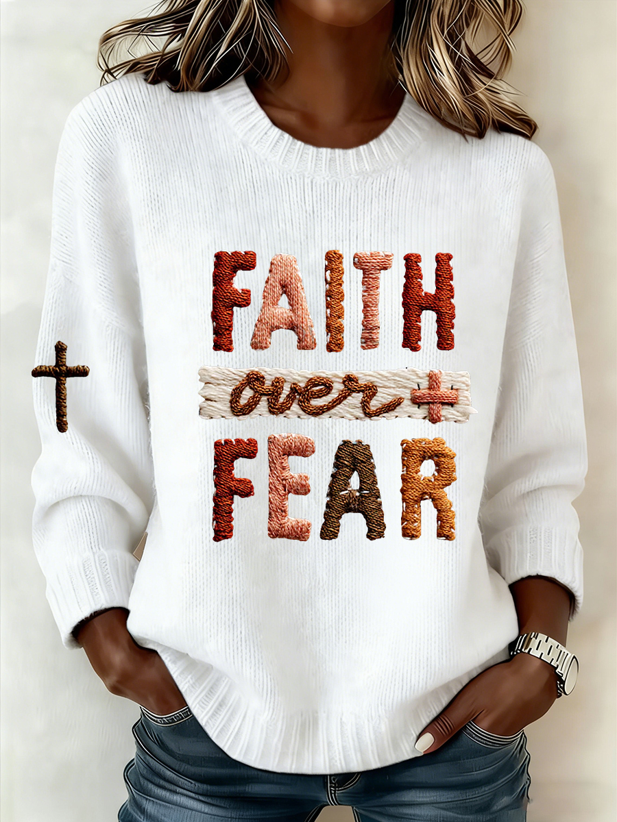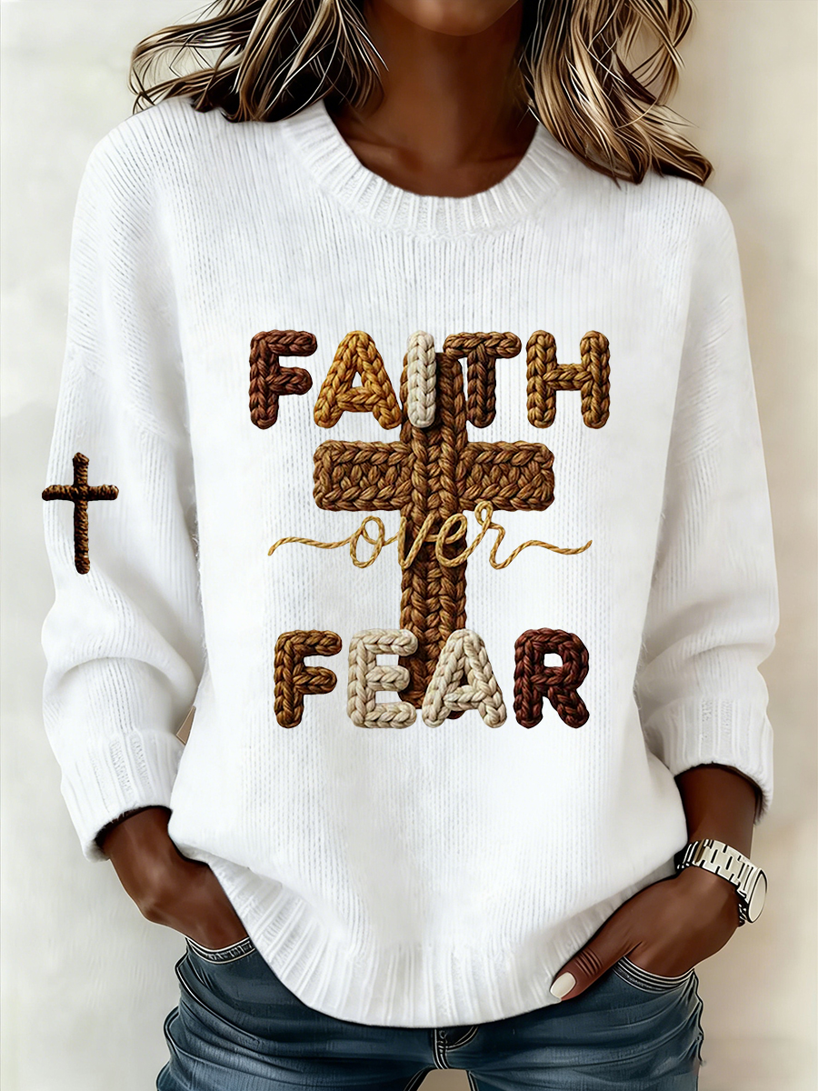 Women'S Casual Faith Over Fear Cross Printed Sweatshirt
