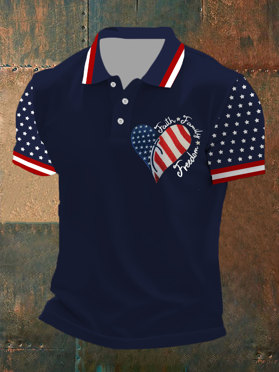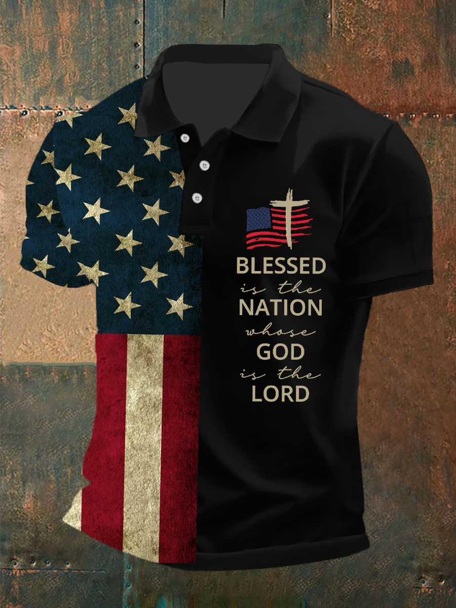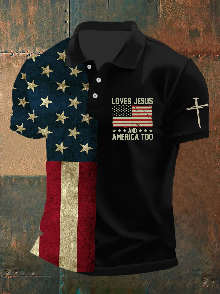 Men's Faith Cross American Flag Print Polo T-shirt