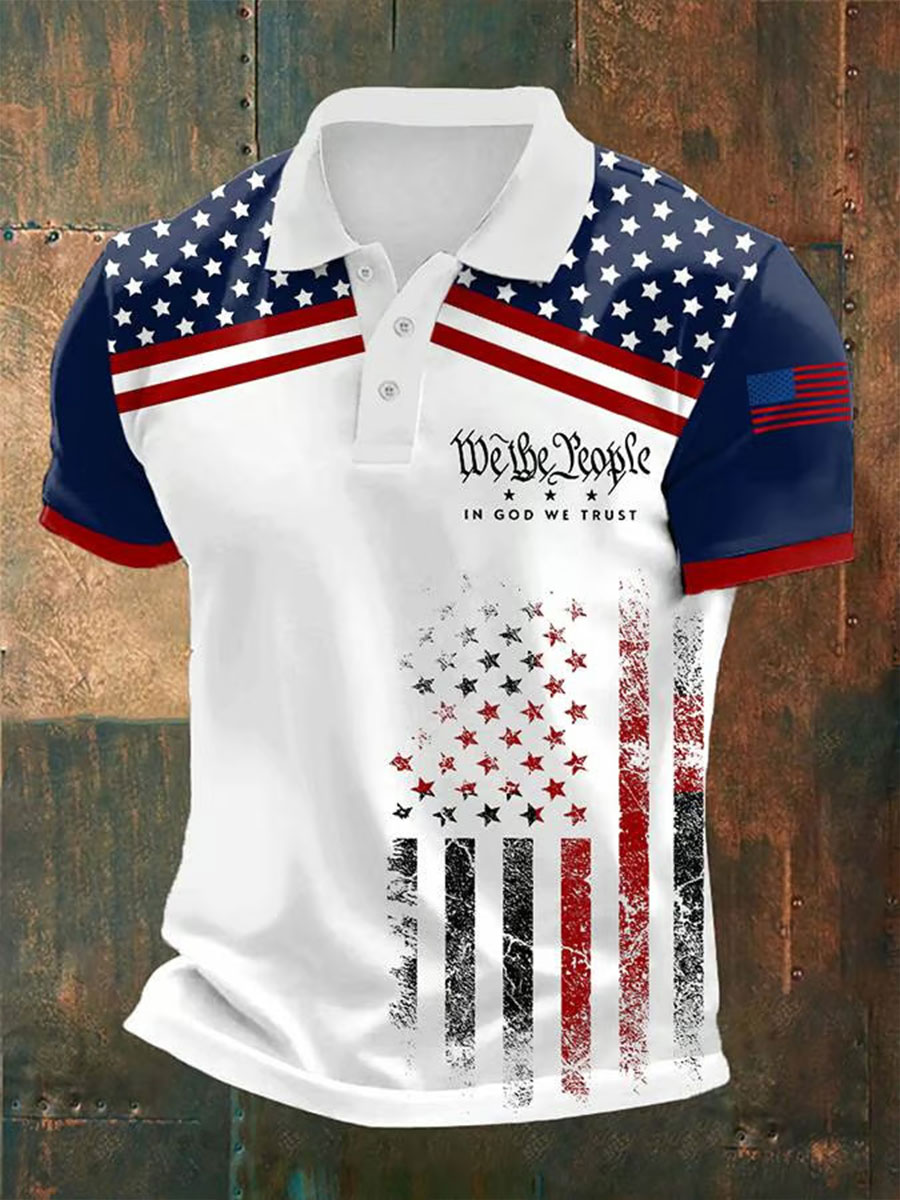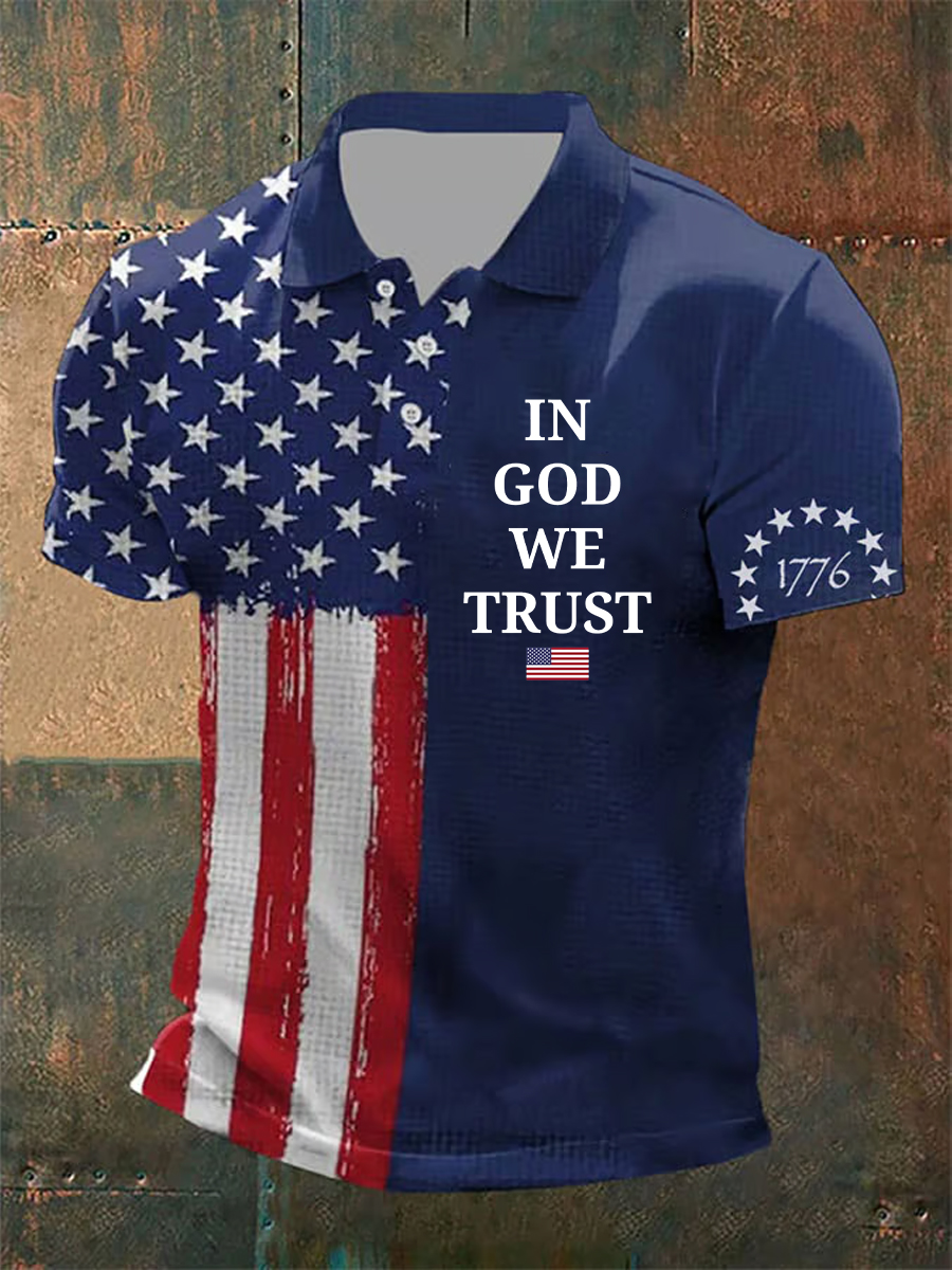 Men'S In God We Trust Retro Flag Print Top Shirt