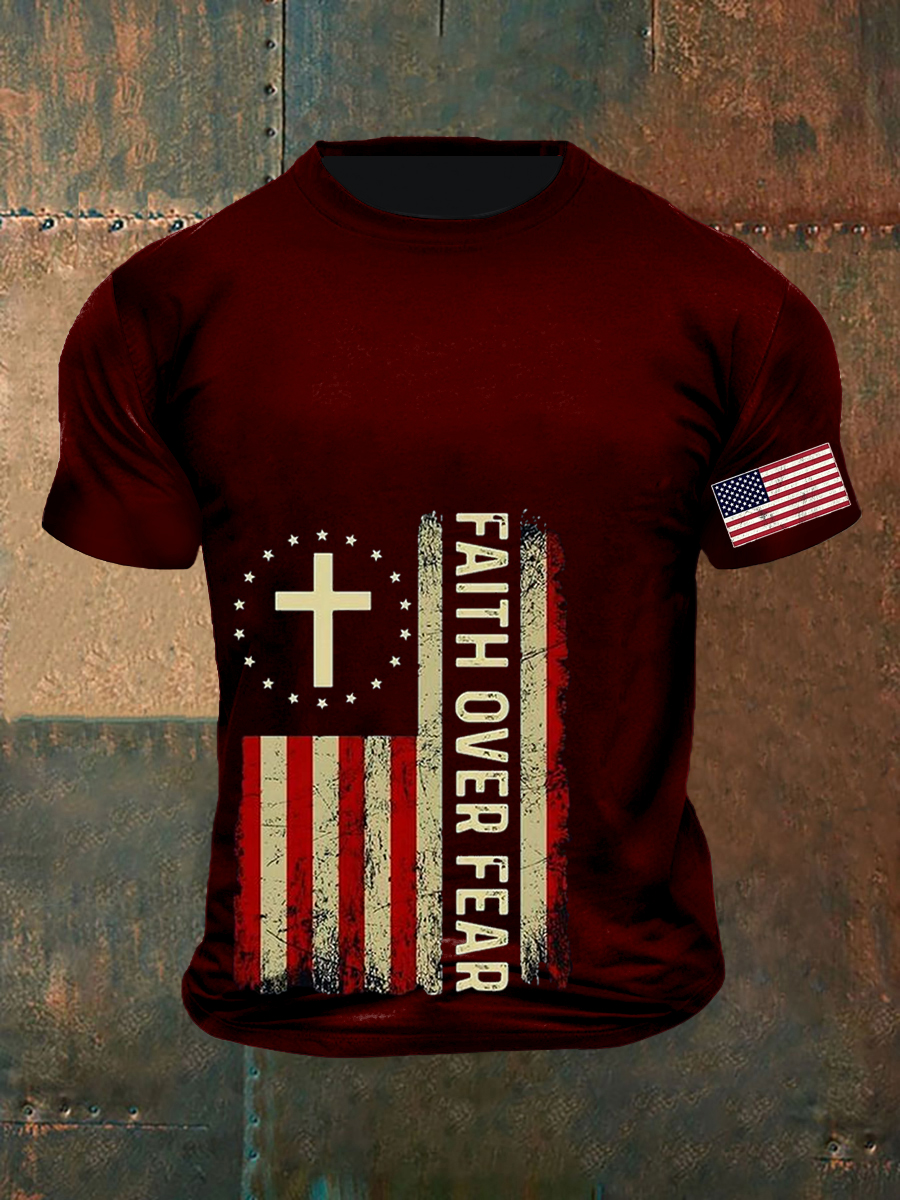 Men's Faith Over Fear USA Flag Print Casual Tee