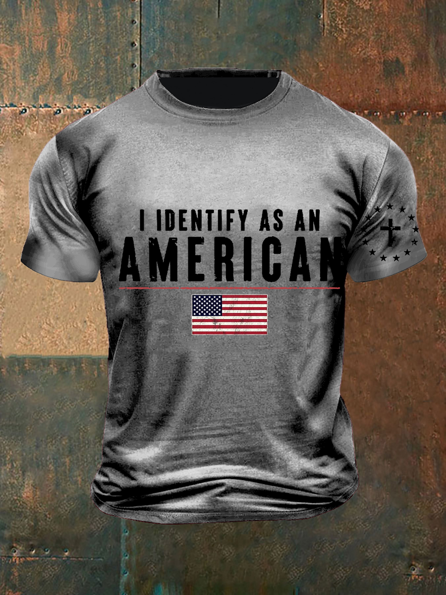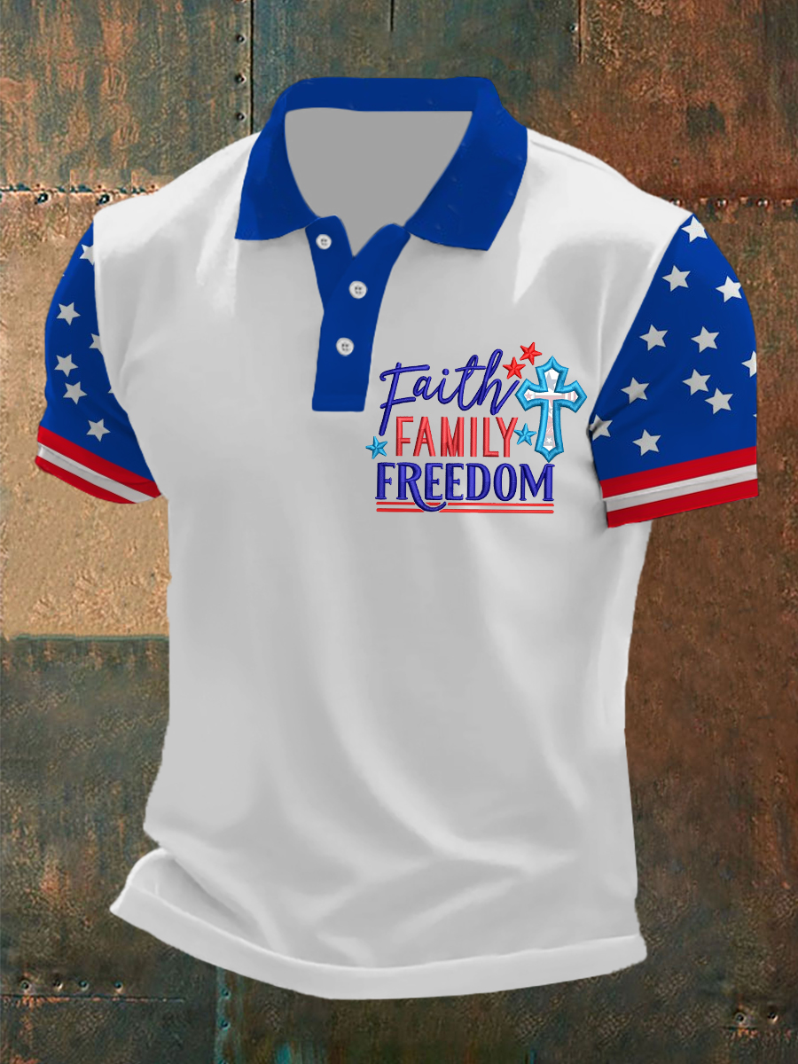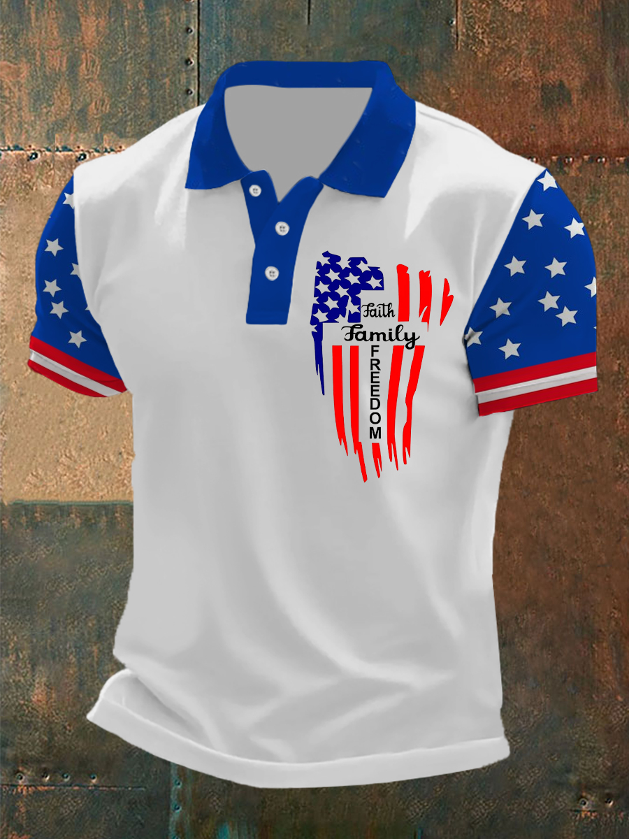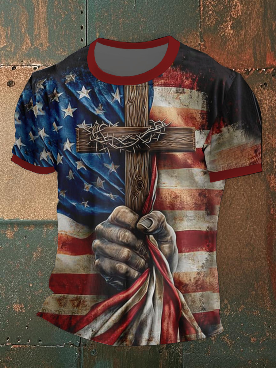 Men's Independence Day Faith Family Freedom Flag Cross Print Short Sleeve Top