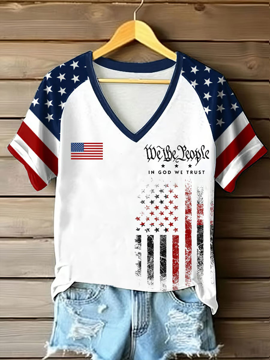 Women's Vintage Flag In God We Trust Printed Casual T-Shirt