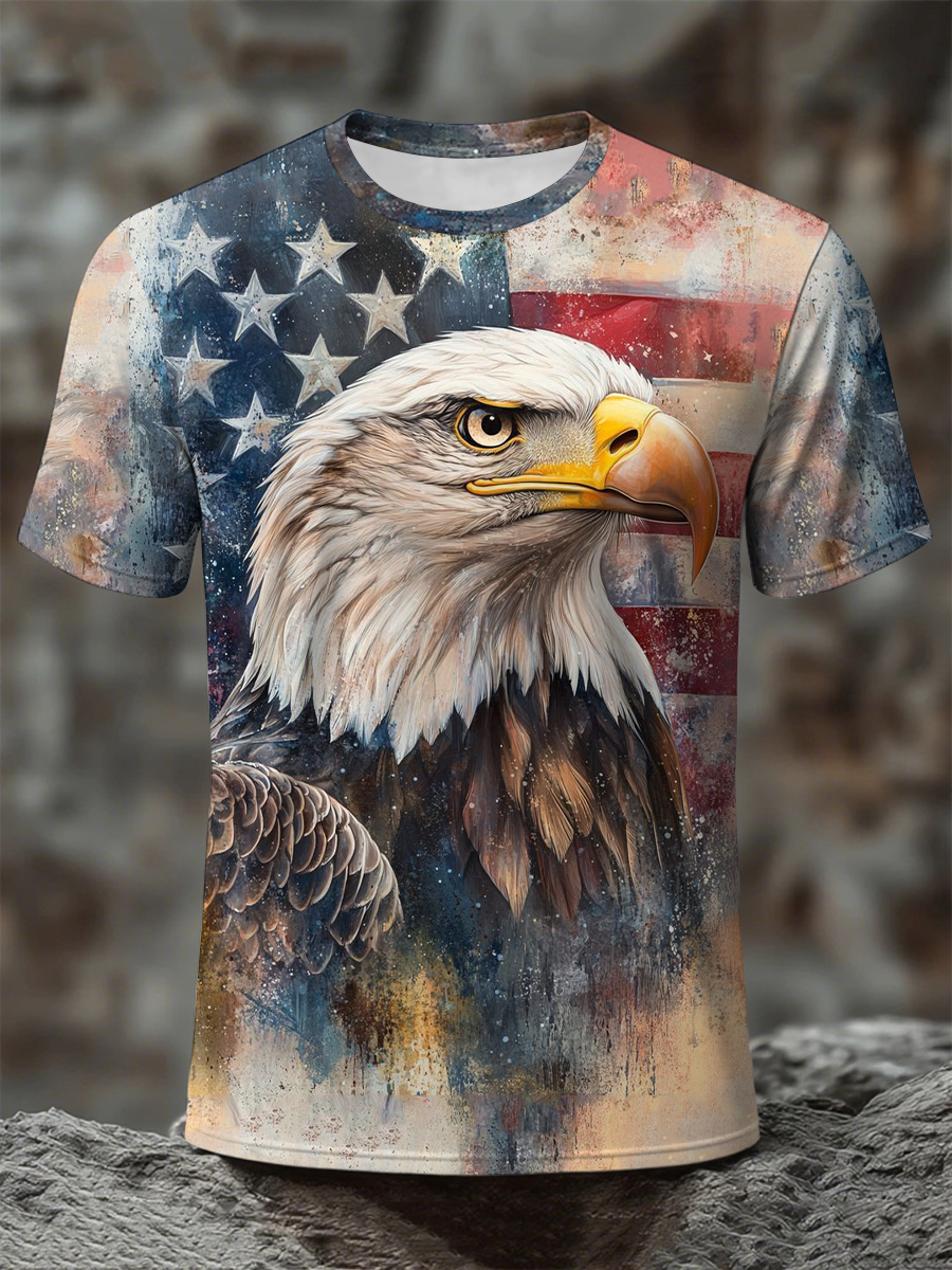 Men's American Flag Eagle Print Casual T-Shirt