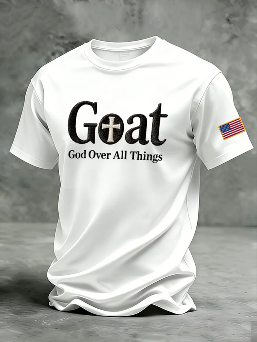 Men's Bible Verse GOAT God Over All Things Faith Cross Printed Short Sleeve Zip T-Shirt