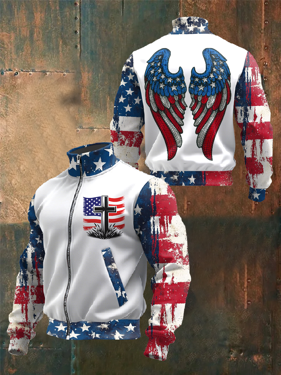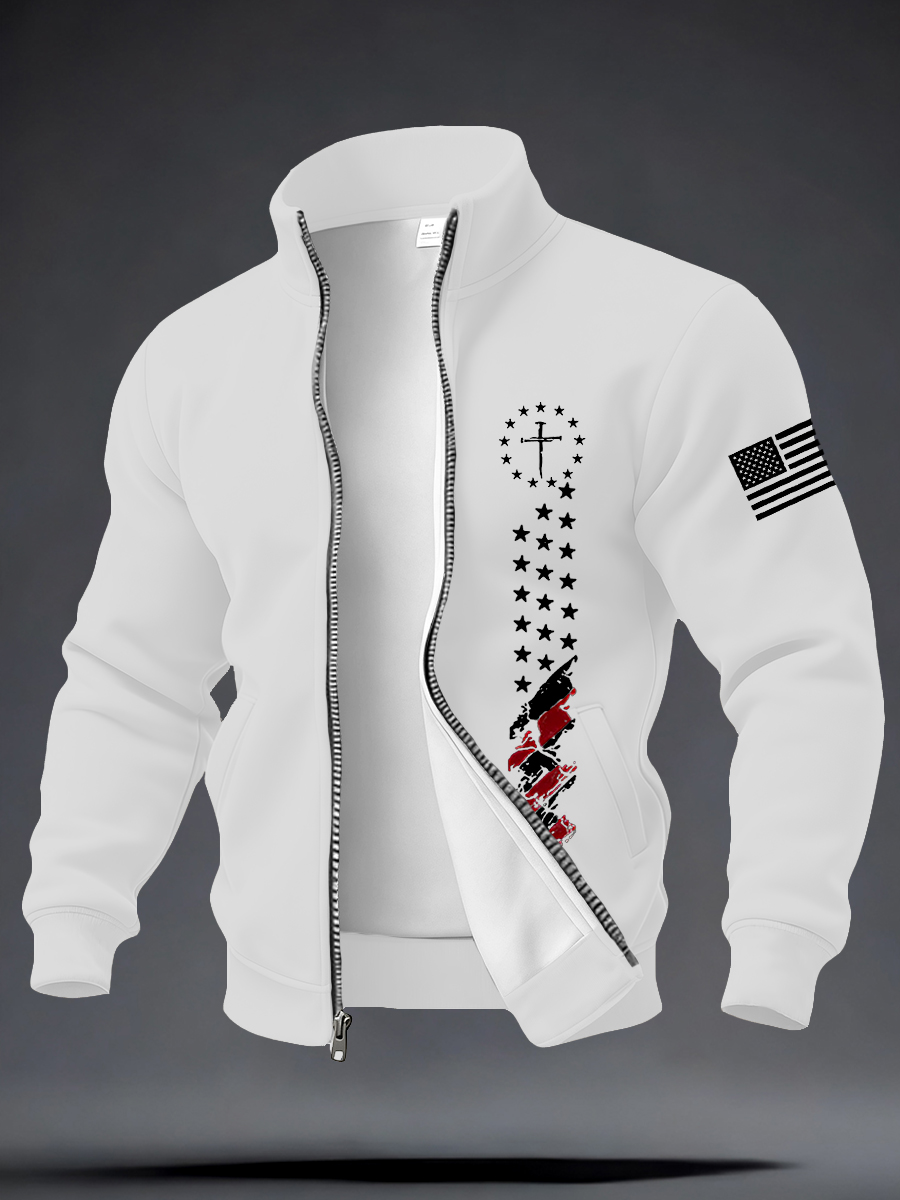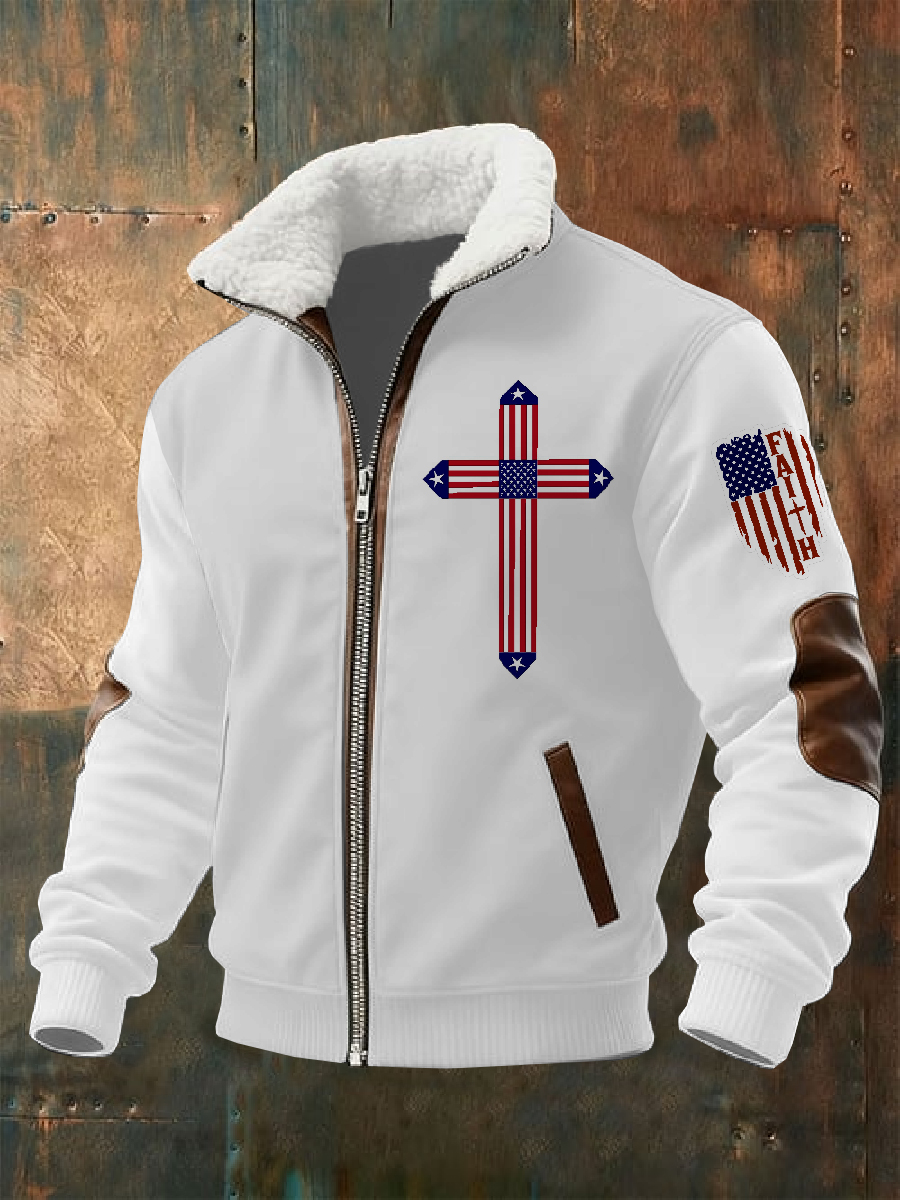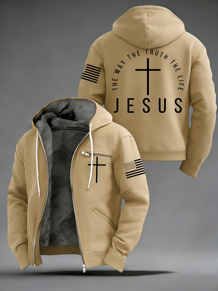 Men's Jesus The Way The Truth The Life Flag Print Casual Zipper Hooded Plush Jacket