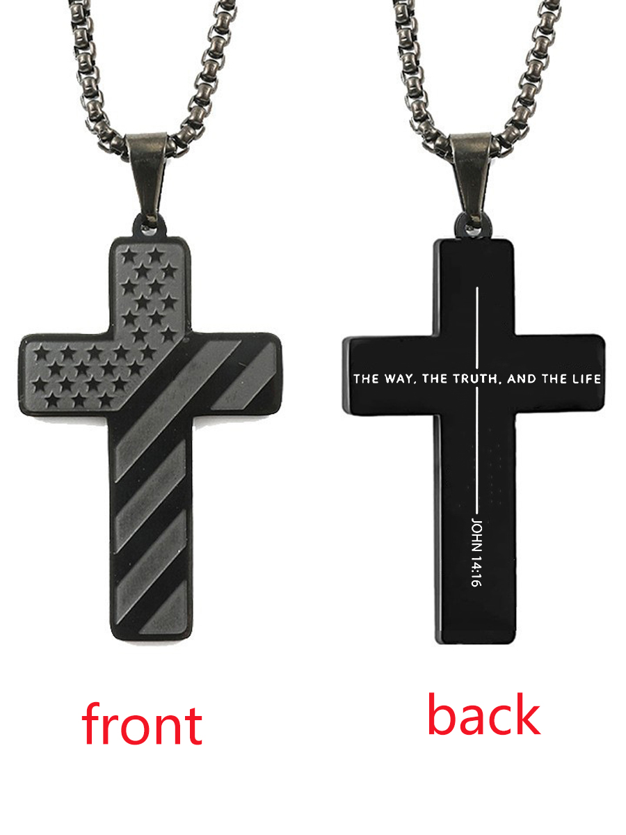 Men's Christian US USA Flag American Christ Faith Over Fear Cross Checkered Cotton Hoodie