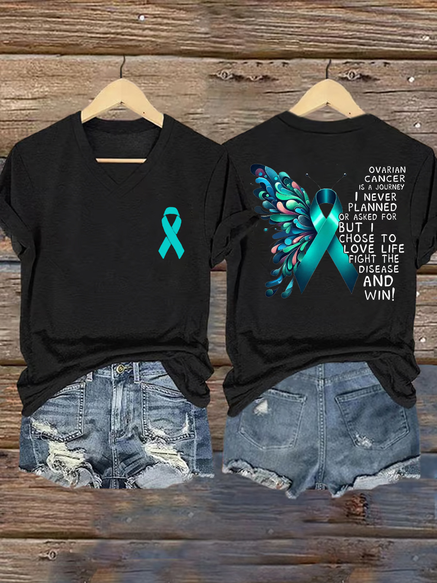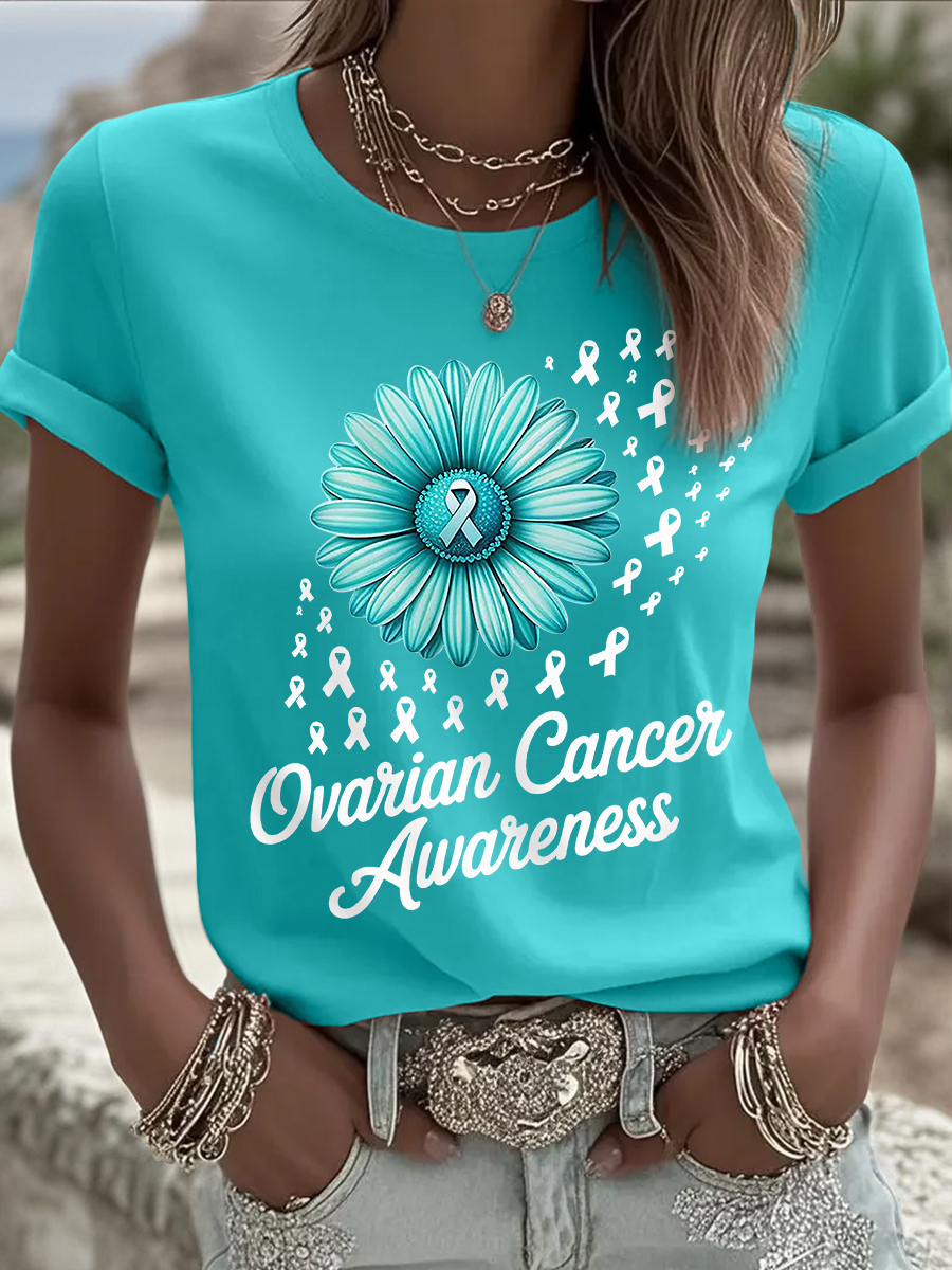 Women's Ovarian Cancer Awareness Print T-Shirt